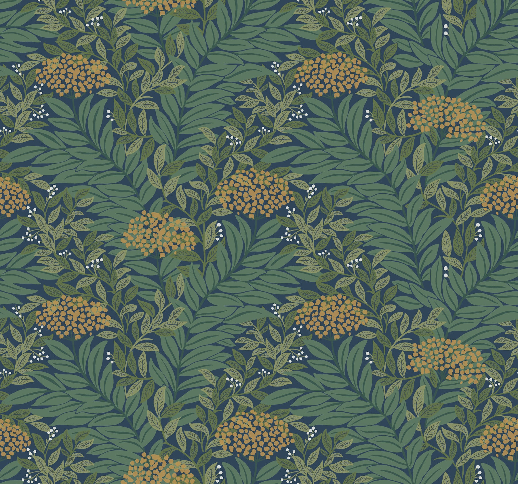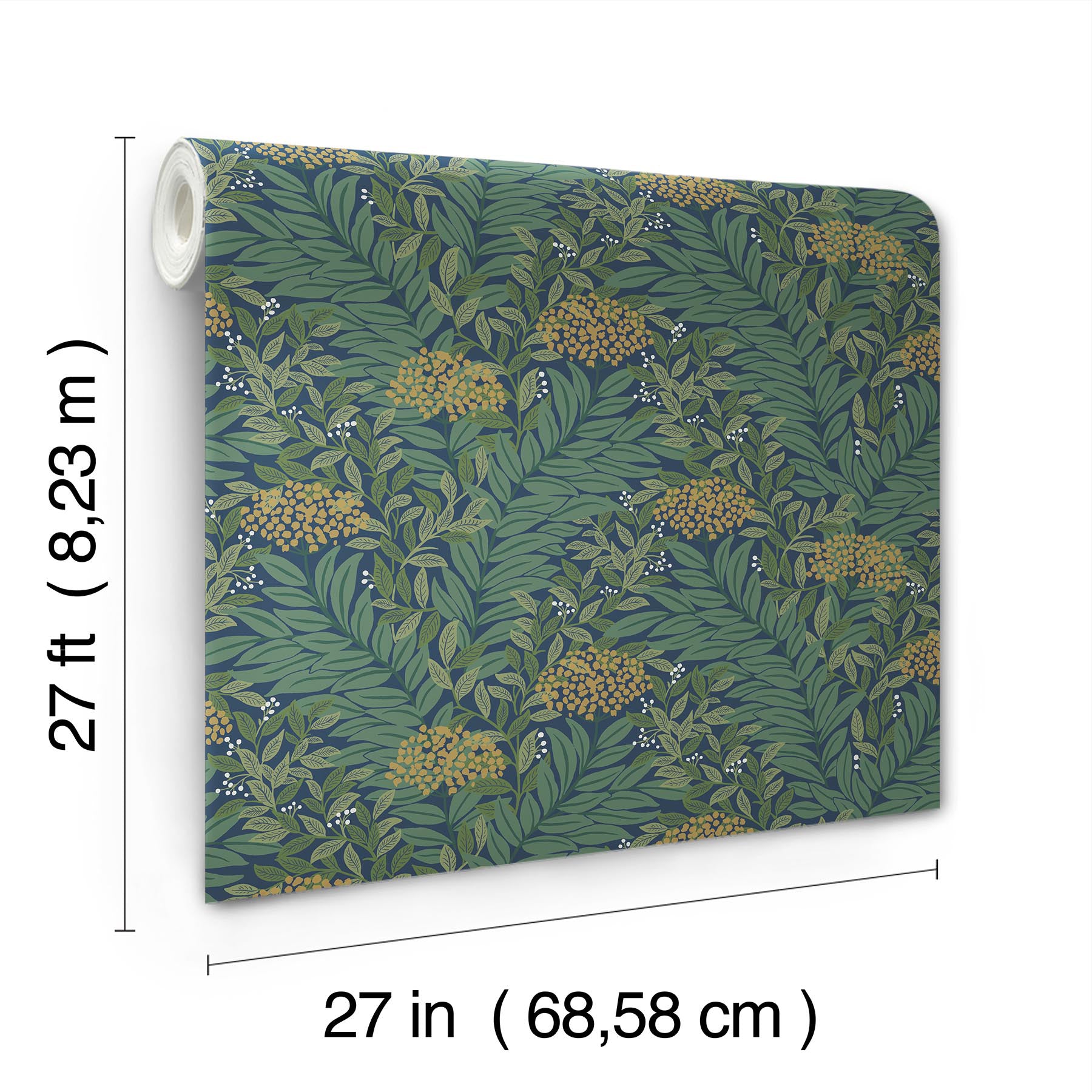 Use:Highgrove is a traditional design featuring layered leaves that create a lush tapestry of greenery, accented by sprays of Queen Anne?s Lace. Illustrated in shades of terracotta, green, and sapphire blue. This Highgrove Wallpaper measures approximately 27 inches wide by 27 feet long, measuring approximately 60.8 square feet per roll. The world of Rifle Paper Co. is in full bloom with their third wallpaper collection. With statement floral prints, detailed illustrated designs, and metallic accents, this collection is designed to bring beauty to every room.