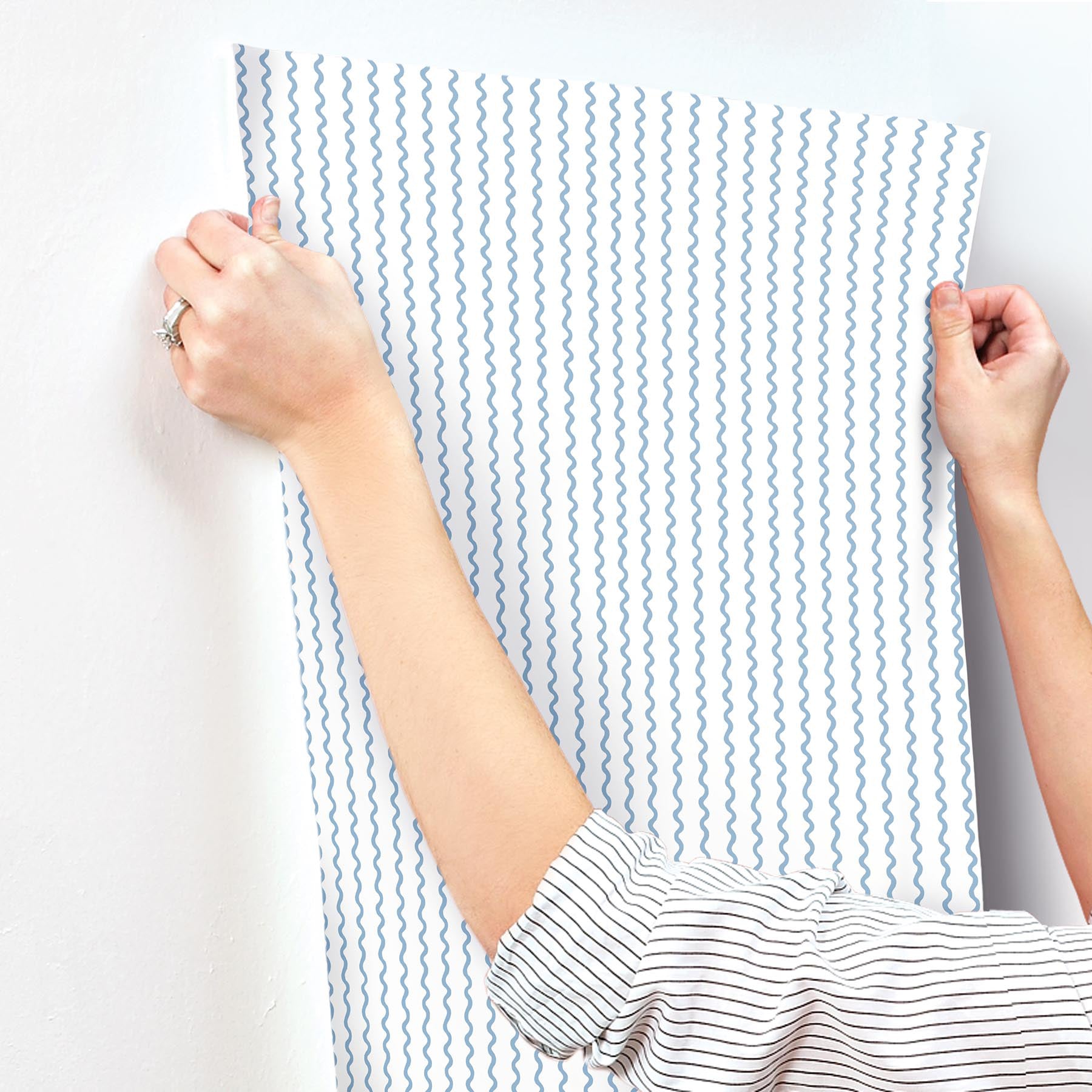 Use:With the curving shape of trailing ribbon, Rifle Paper Co.?s Rickrack wallpaper is a charming update to a classic stripe, inked in blue against white. This Rickrack Wallpaper measures approximately 27 inches wide by 27 feet long, measuring approximately 60.8 square feet per roll. The world of Rifle Paper Co. is in full bloom with their third wallpaper collection. With statement floral prints, detailed illustrated designs, and metallic accents, this collection is designed to bring beauty to every room.