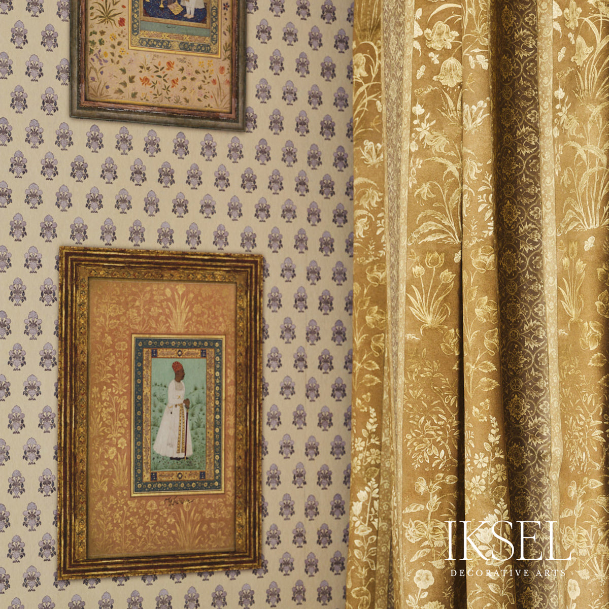 Use:These stripes with golden flowers take inspiration from the borders of 17th-century Mogul miniatures. Designed by Iksel and distributed exclusively by Schumacher in the U.S. and Canada.