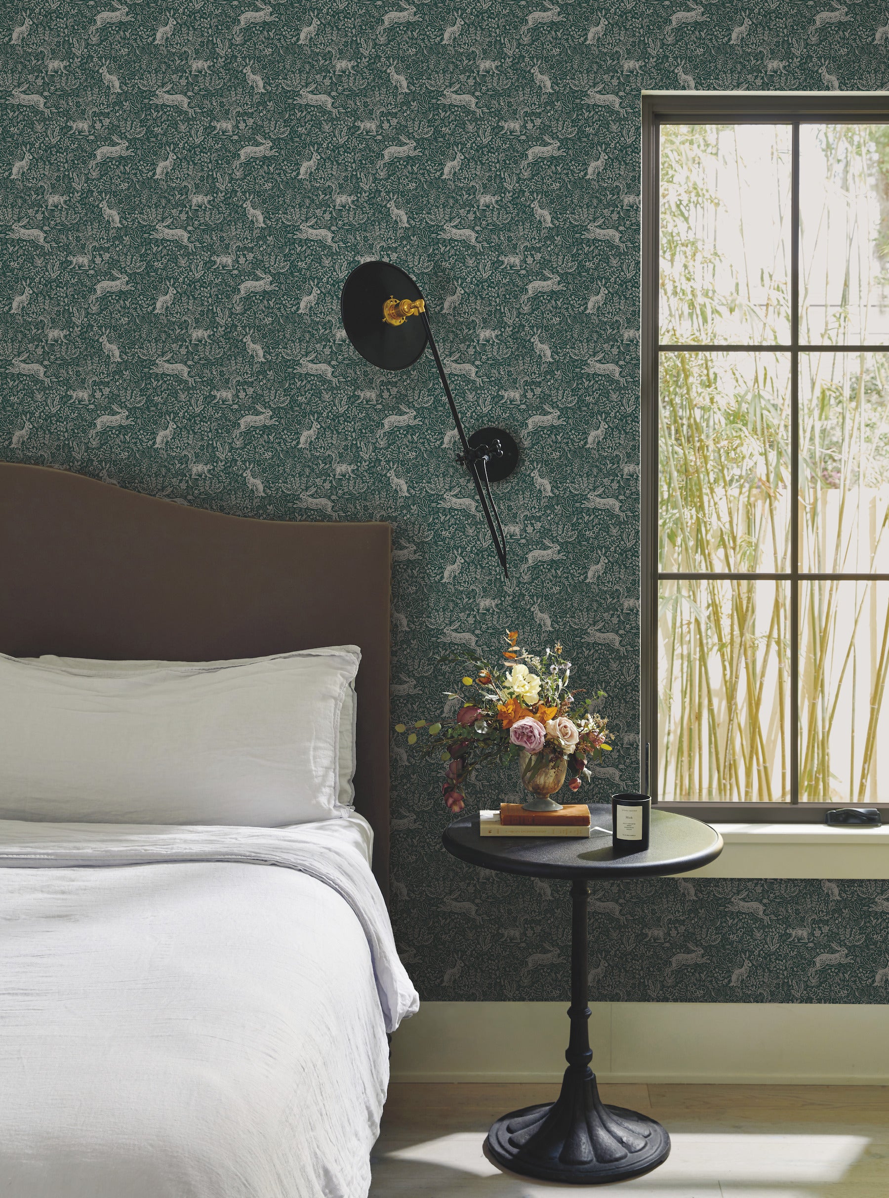 York Wallcoverings Rifle Paper Co. Fable Emerald Wallpaper Animals Greens - RI5104