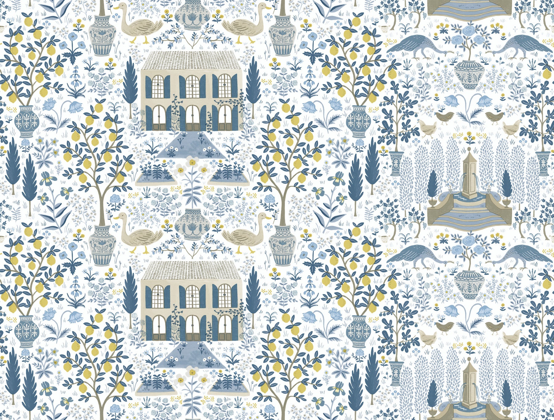 Use:Inspired by a property of the same name in Gascony, France and an antique pattern from York?s archives, the Rifle Paper Co. Camont print features an illustration of an 18th-century French farmhouse and the fig trees, lemon trees, animals and flowers of it?s pastoral grounds. This Camont Wallpaper measures approximately 27 inches wide by 27 feet long, covering About 60.8 square feet per roll. Printed on an unpasted paper and created with the highest quality of craftsmanship, this wallpaper is easy to install; simply apply paste to paper and hang.