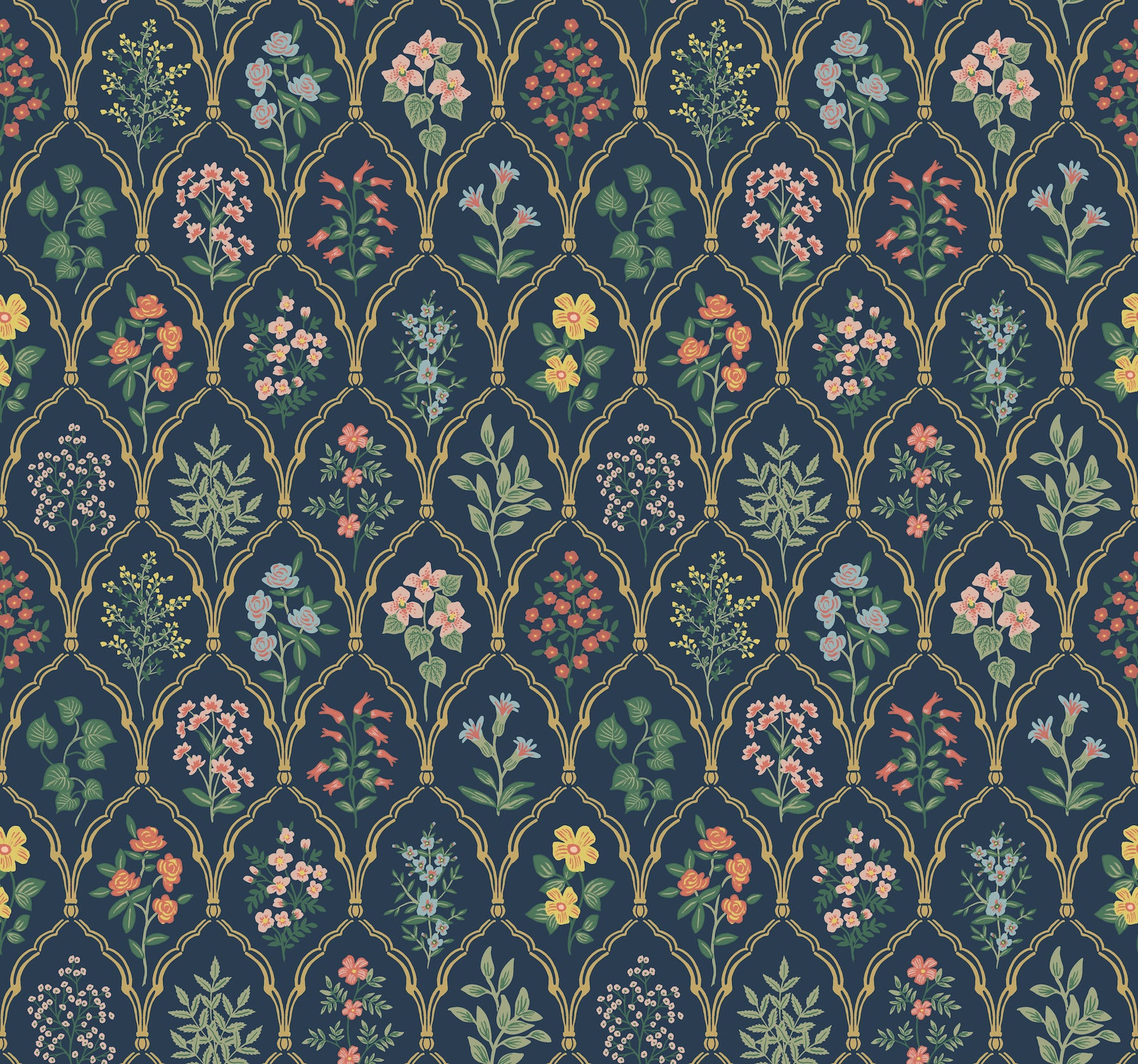 York Wallcoverings Rifle Paper Co. Hawthorne Navy Wallpaper Botanical Blues - RI5129