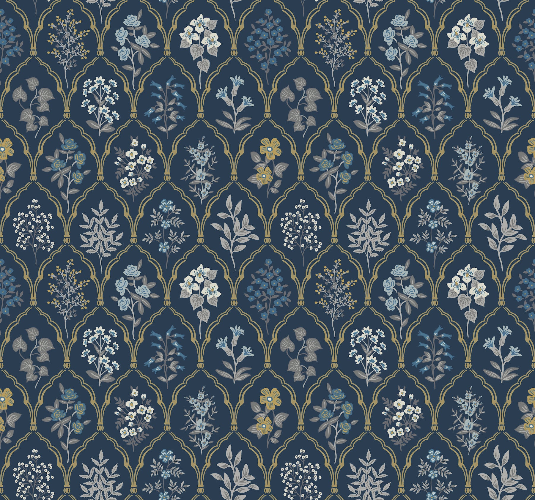 York Wallcoverings Rifle Paper Co. Hawthorne Navy and Gold Wallpaper Botanical Multicolor - RI5131