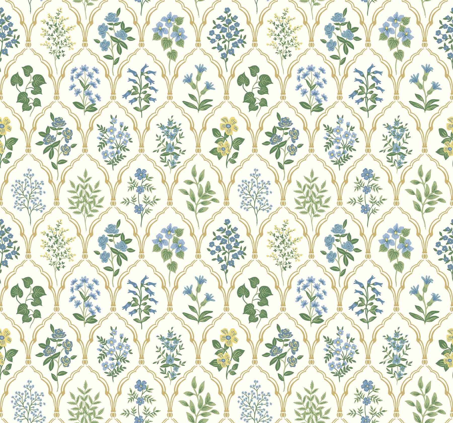 Use:Hawthorne from Rifle Paper Co. features Sprays of assorted flowers standing under delicate arches that create a botanical grid with a vintage feel. This Hawthorne Wallpaper measures approximately 27 inches wide by 27 feet long, covering About 60.8 square feet per roll. Durable and easy to remove from primed walls, this friendly to hang unpasted nonwoven wallpaper is created with a special blend of synthetic fibers, making it both easy to hang and tear resistant.
