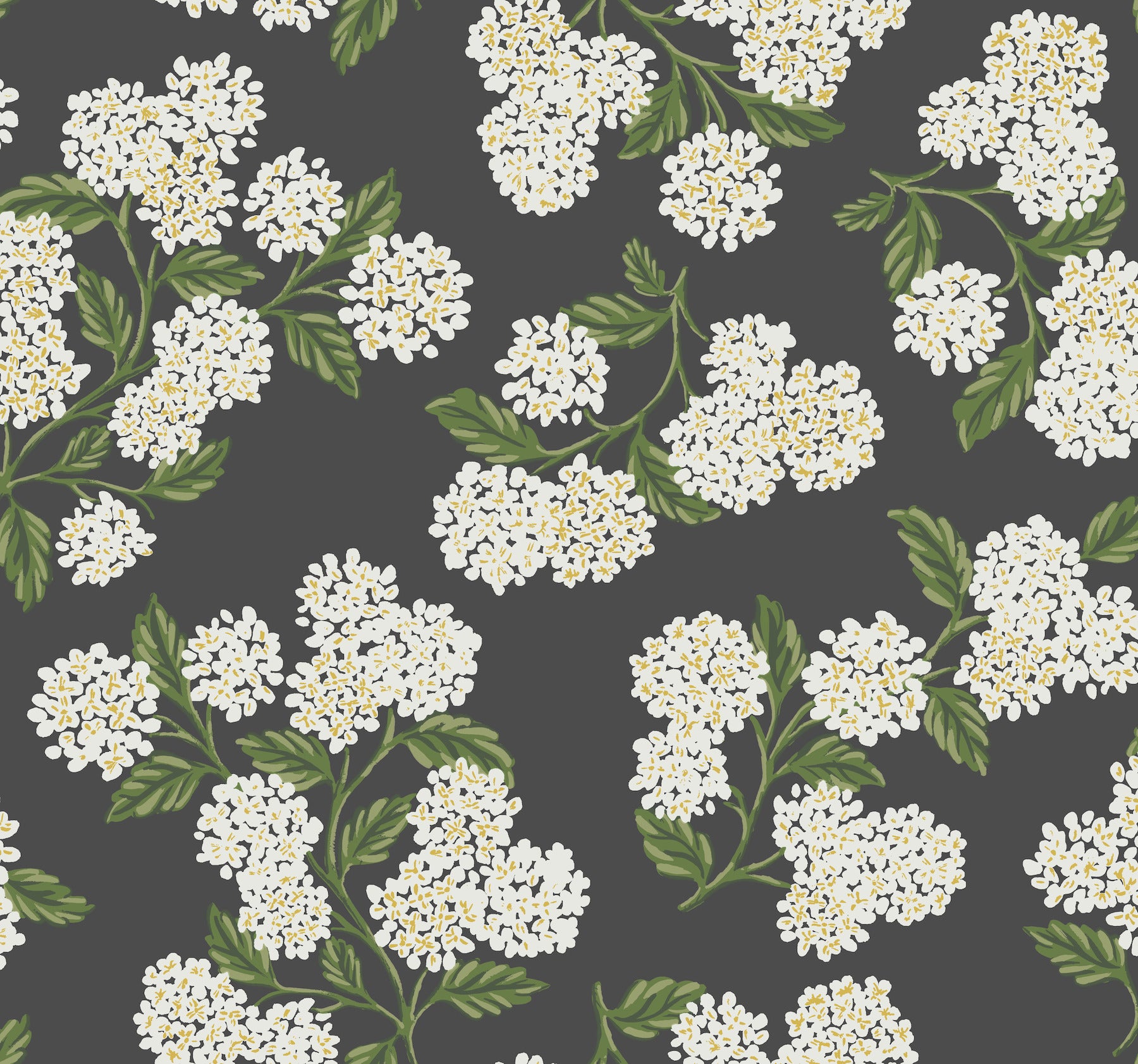 York Wallcoverings Rifle Paper Co. Hydrangea Black and White Wallpaper Botanical Whites and Off-Whites - RI5146