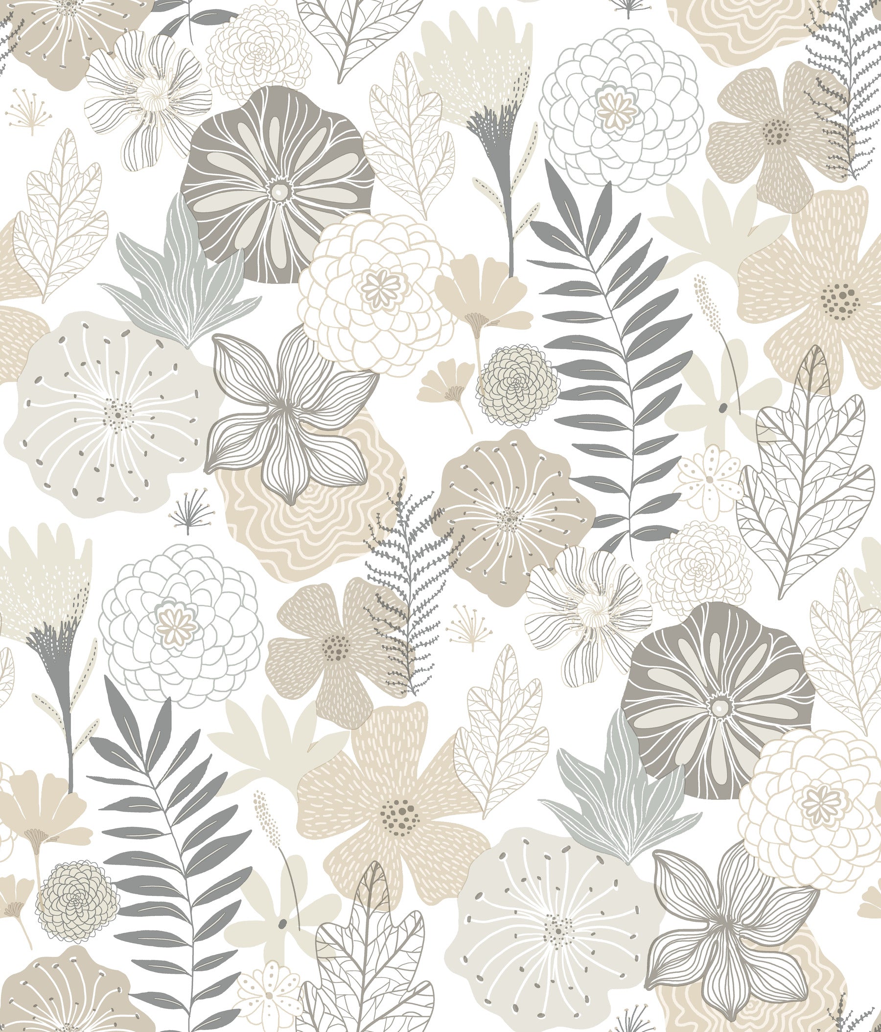 York Wallcoverings RoomMates Perennial Blooms Beige Peel and Stick Wallpaper Modern Botanical Neutrals Wallpaper - RMK11326WP