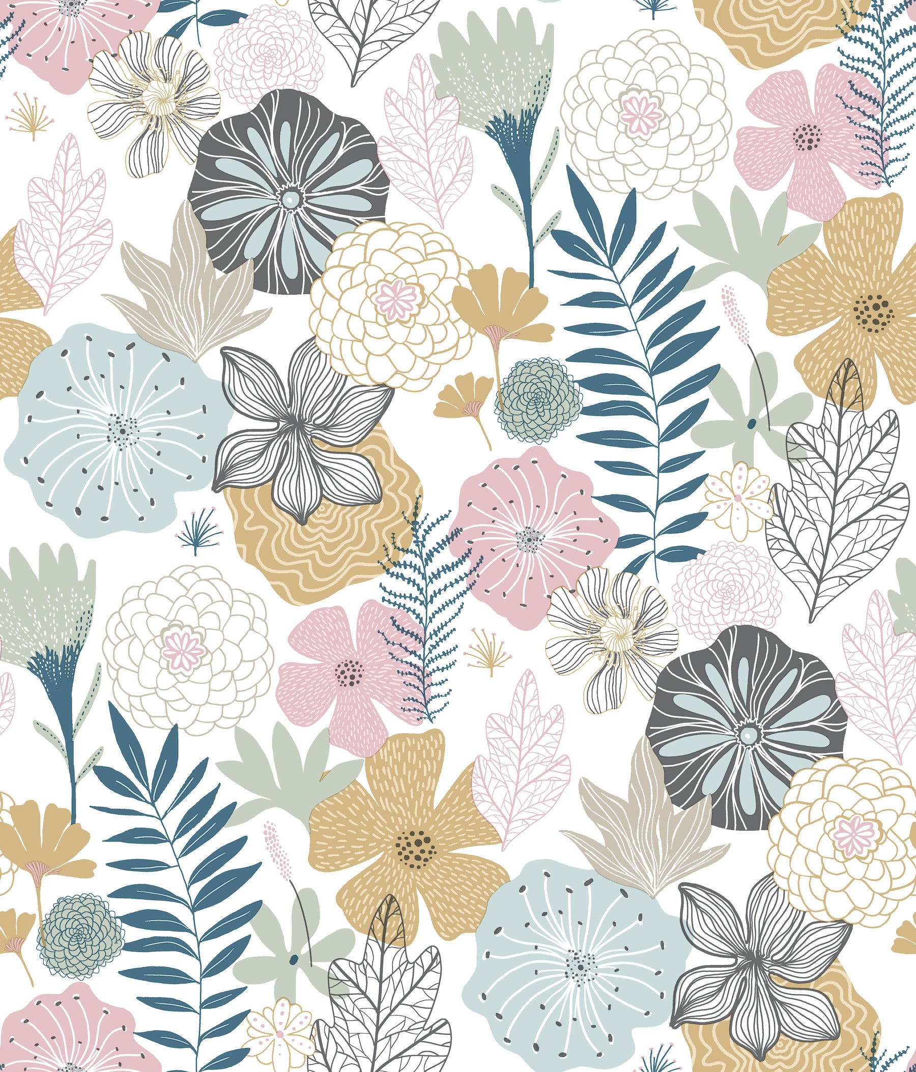 Pattern: RMK11328WP / Perennial Blooms Pink Peel and Stick Wallpaper