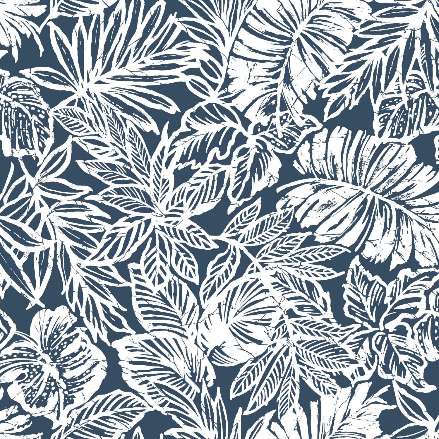 York Wallcoverings RoomMates Batik Tropical Leaf Blue Peel and Stick Wallpaper Tropical Botanical Blues Wallpaper - RMK11437WP
