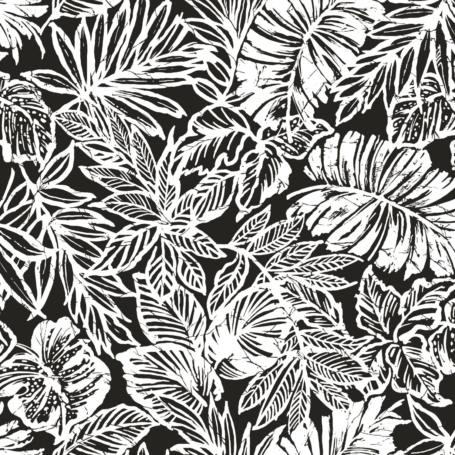 York Wallcoverings RoomMates Batik Tropical Leaf Black Peel and Stick Wallpaper Tropical Botanical Blacks Wallpaper - RMK11439WP