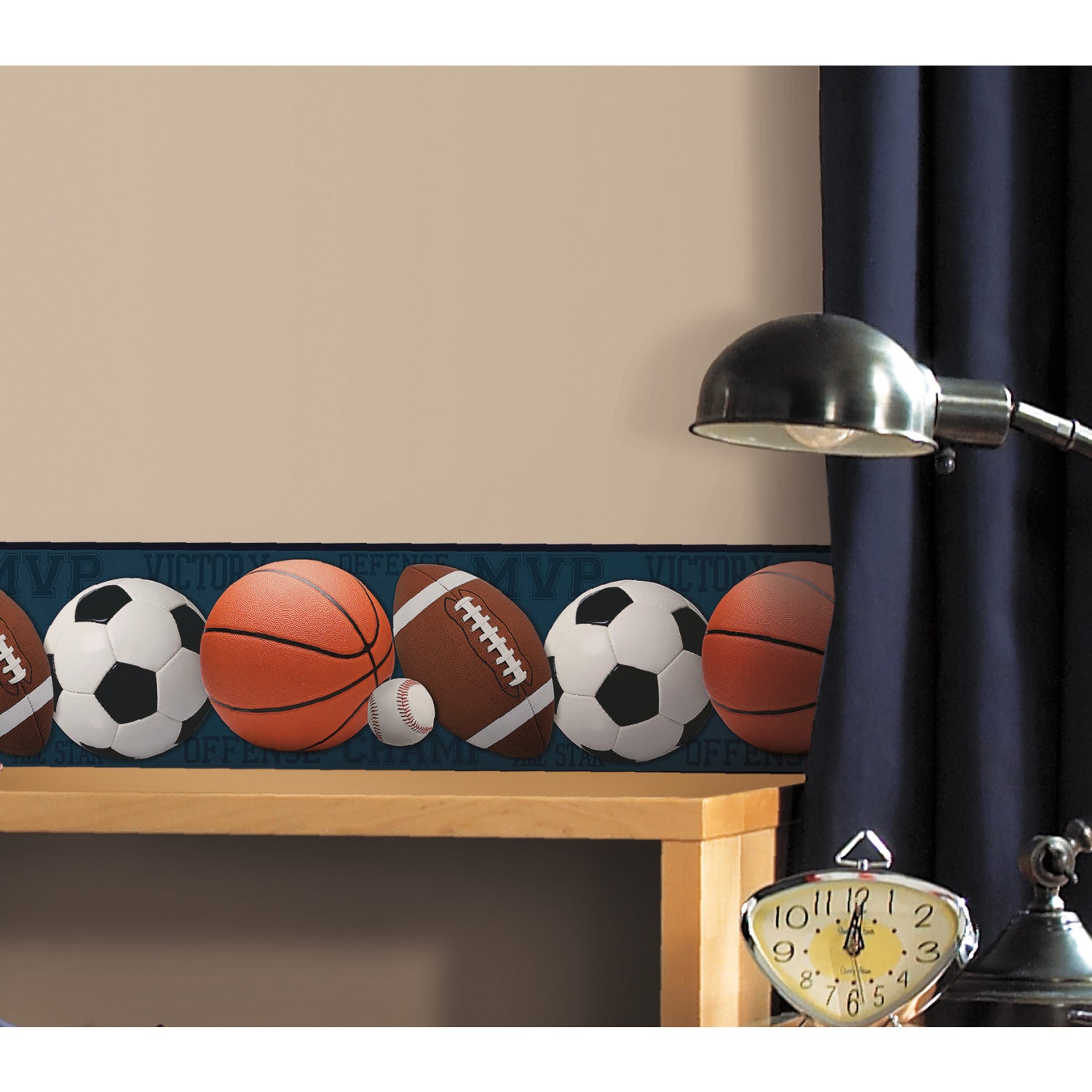 York Wallcoverings RoomMates Sports Balls Peel and Stick Border Masculine Sports Blues Wallpaper - RMK11503BD