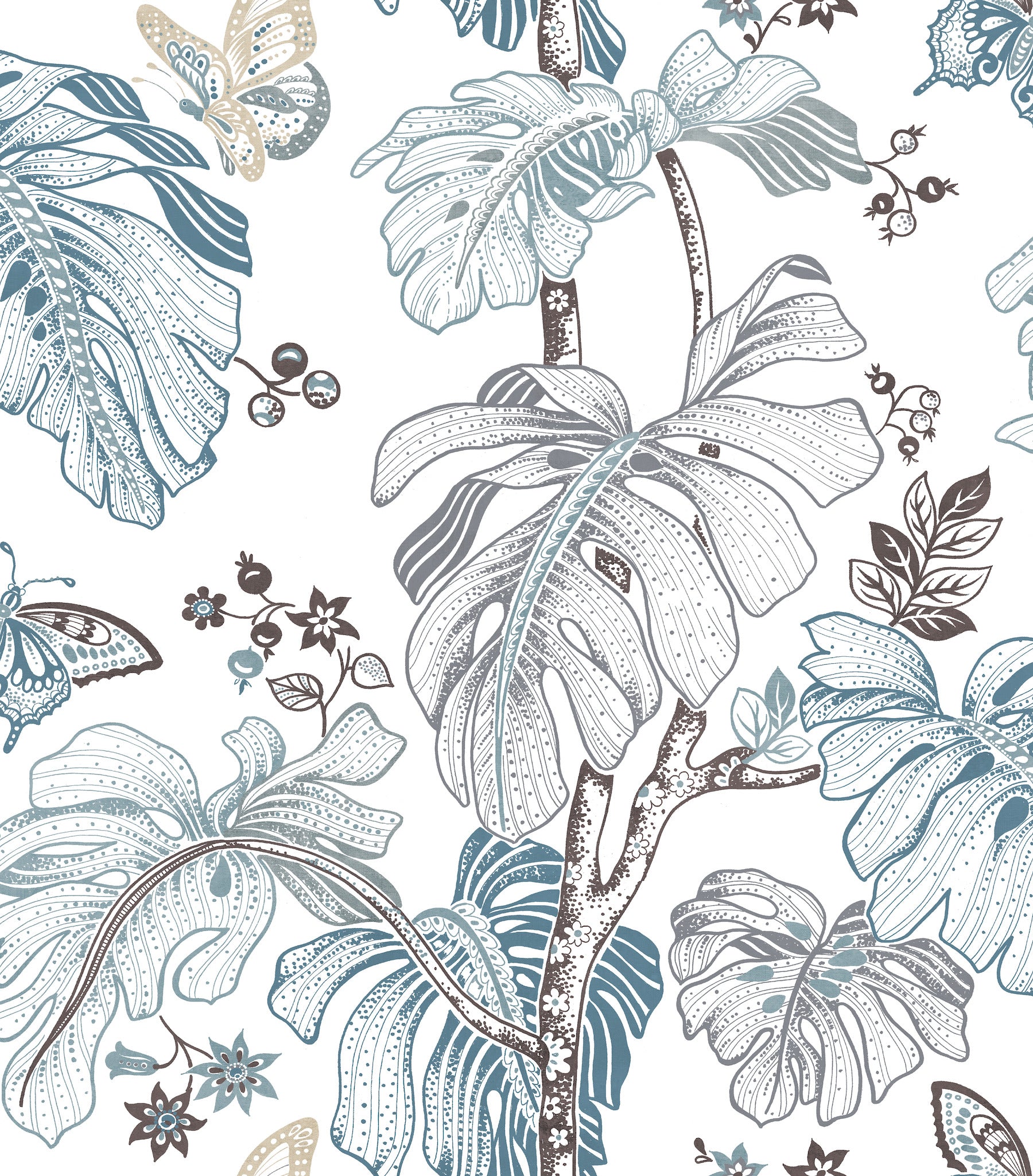 Pattern: RMK11584RL / Boho Palm Blue Peel and Stick Wallpaper