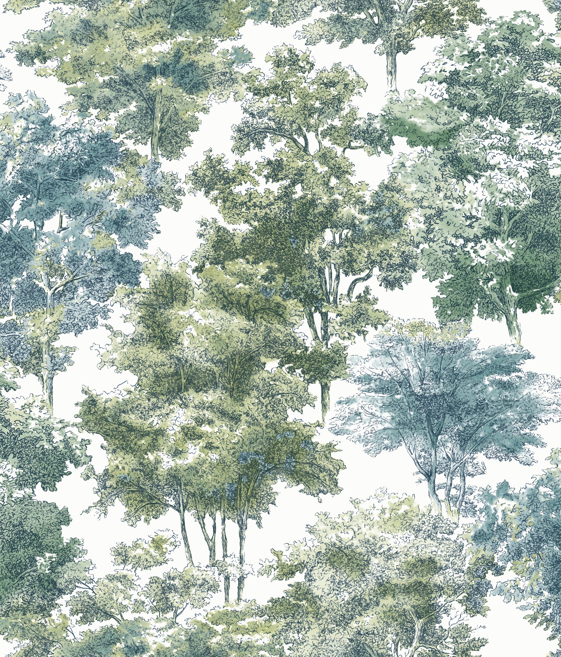 Pattern: RMK11615WP / Old World Trees Green Peel and Stick Wallpaper