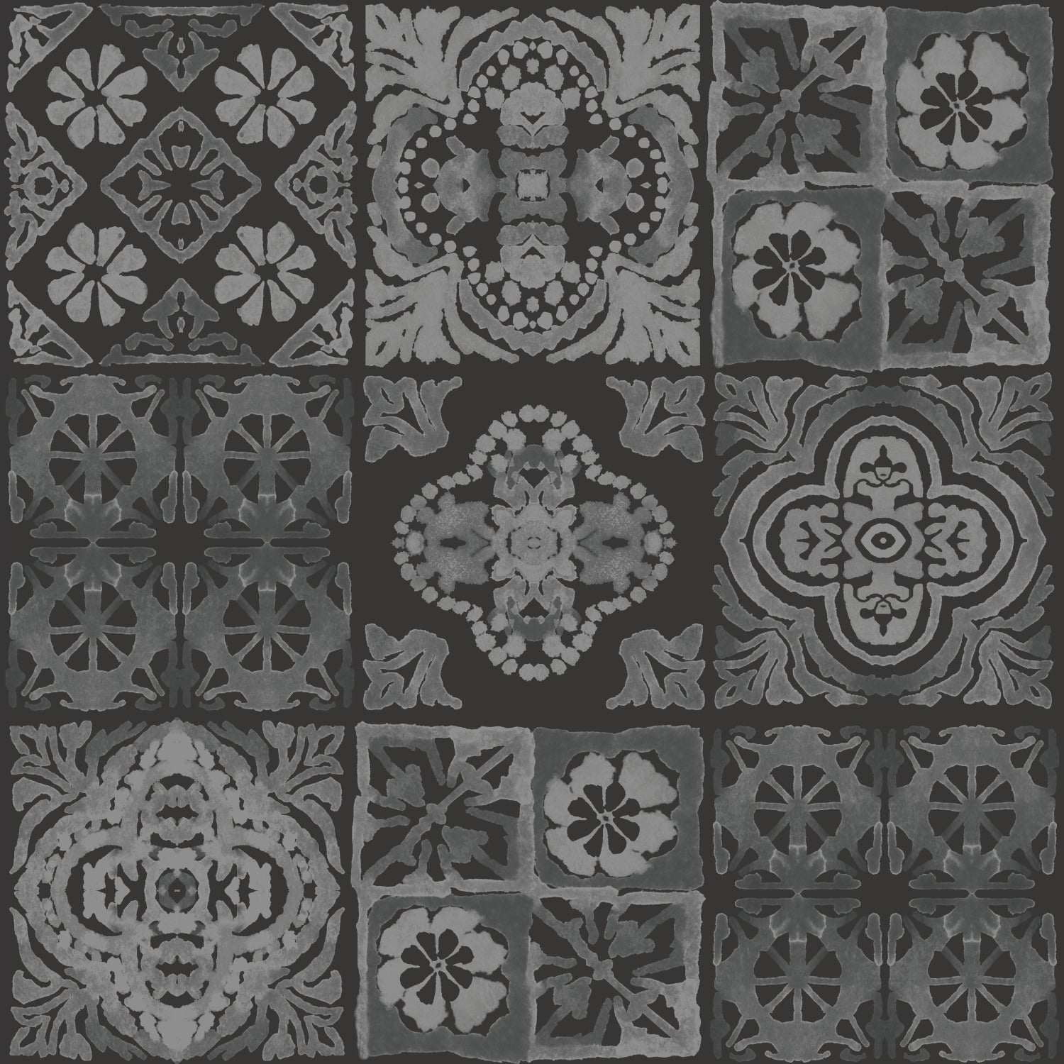 Pattern: RMK11648WP / Marrakesh Tile Grey Peel and Stick Wallpaper