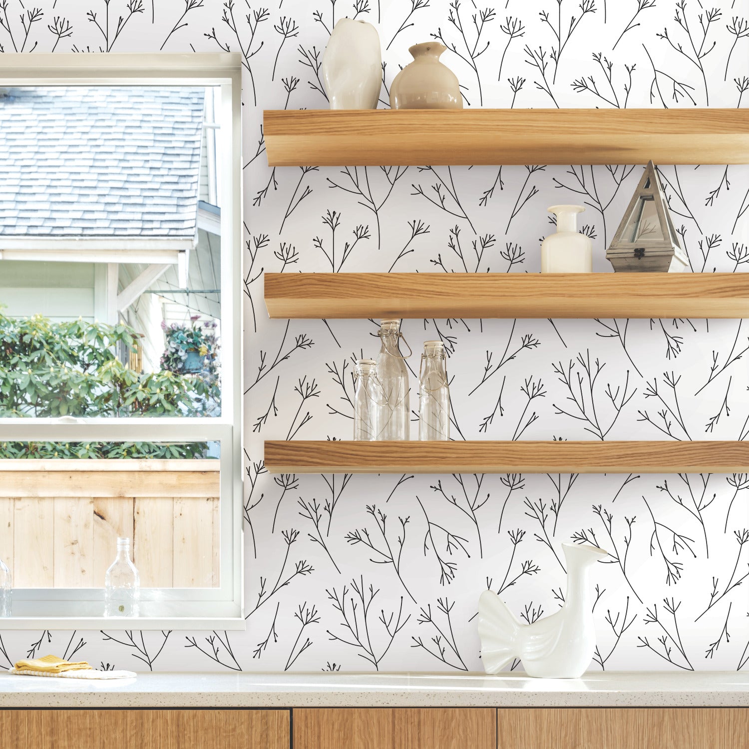 Use:Captive the look and feel of a nature-inspired forest in any room with Black and White Twigs Peel and Stick Wallpaper by RoomMates. Simple and affordable, give walls, decor and accessories a refreshing transformation with very little effort. Great for DIY projects, temporary home decorating and more, Peel and Stick Wallpaper transforms any space or decor in minutes. Simply peel from the backing and stick to any clean flat surface. When it?s time to redecorate, remove in full strips without damaging painted walls or leaving any sticky residue behind. Bring the glories of nature into your home with peel and stick wallpaper from RoomMates.