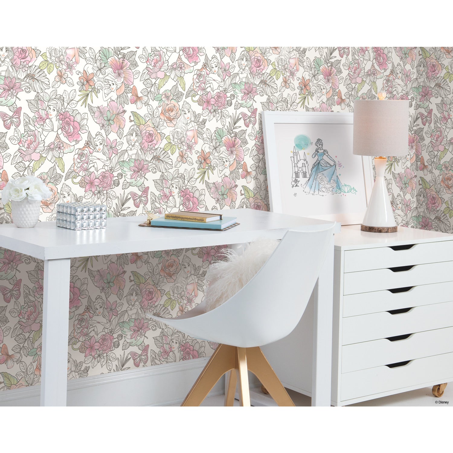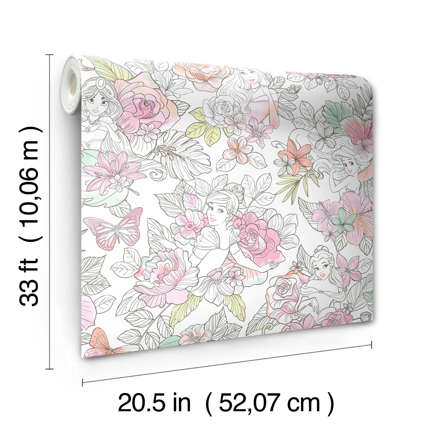 York Wallcoverings RoomMates Disney Princess Royal Floral Pink Peel and Stick Wallpaper Whimsical Licensed Pinks Wallpaper - RMK11800WP