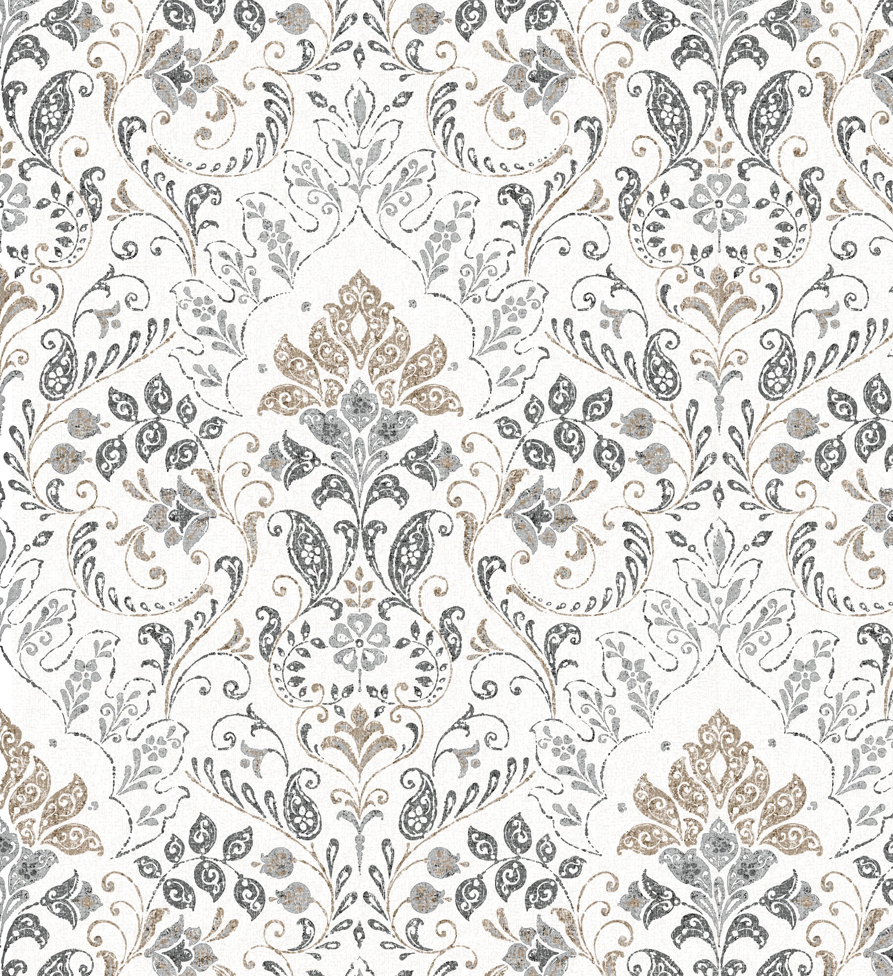 Pattern: RMK11834WP / Persian Damask Grey Peel and Stick Wallpaper