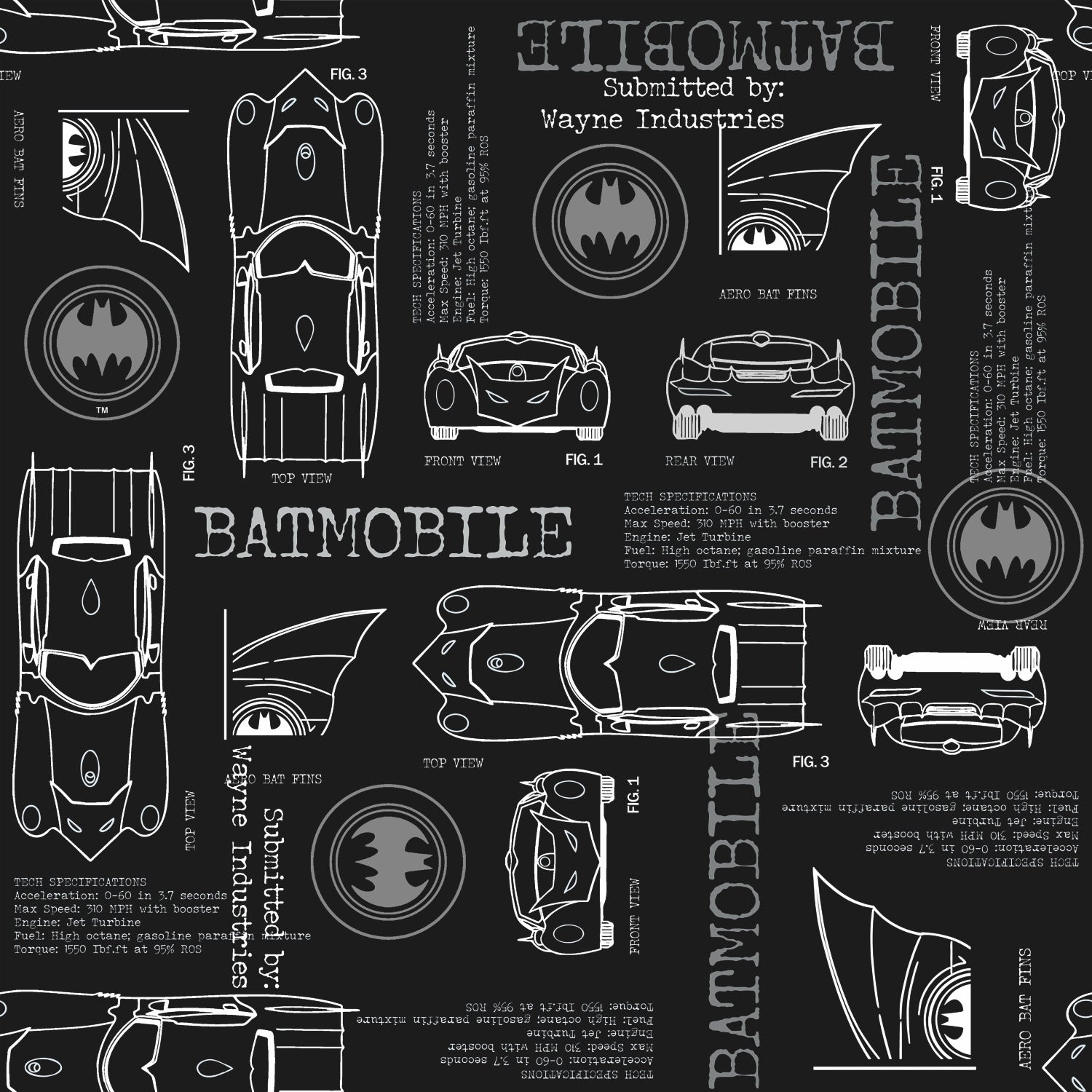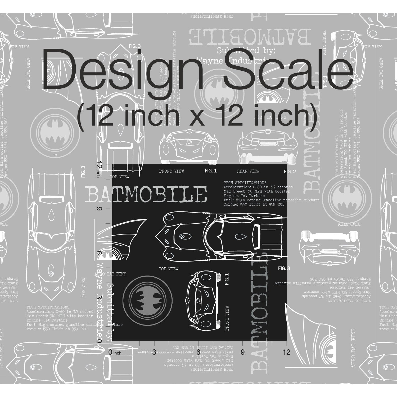 Pattern: RMK11849RL / Batmobile Blueprint Grey Peel and Stick Wallpaper