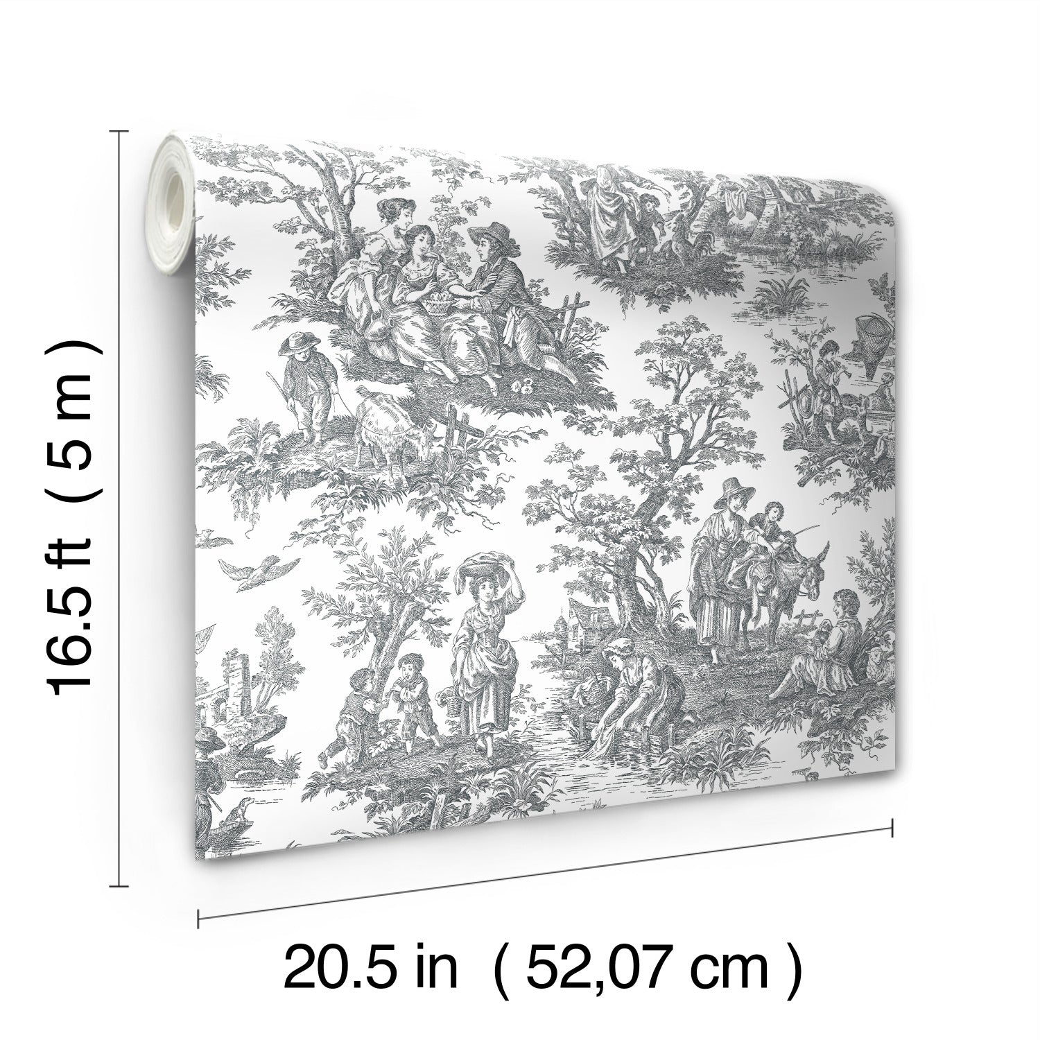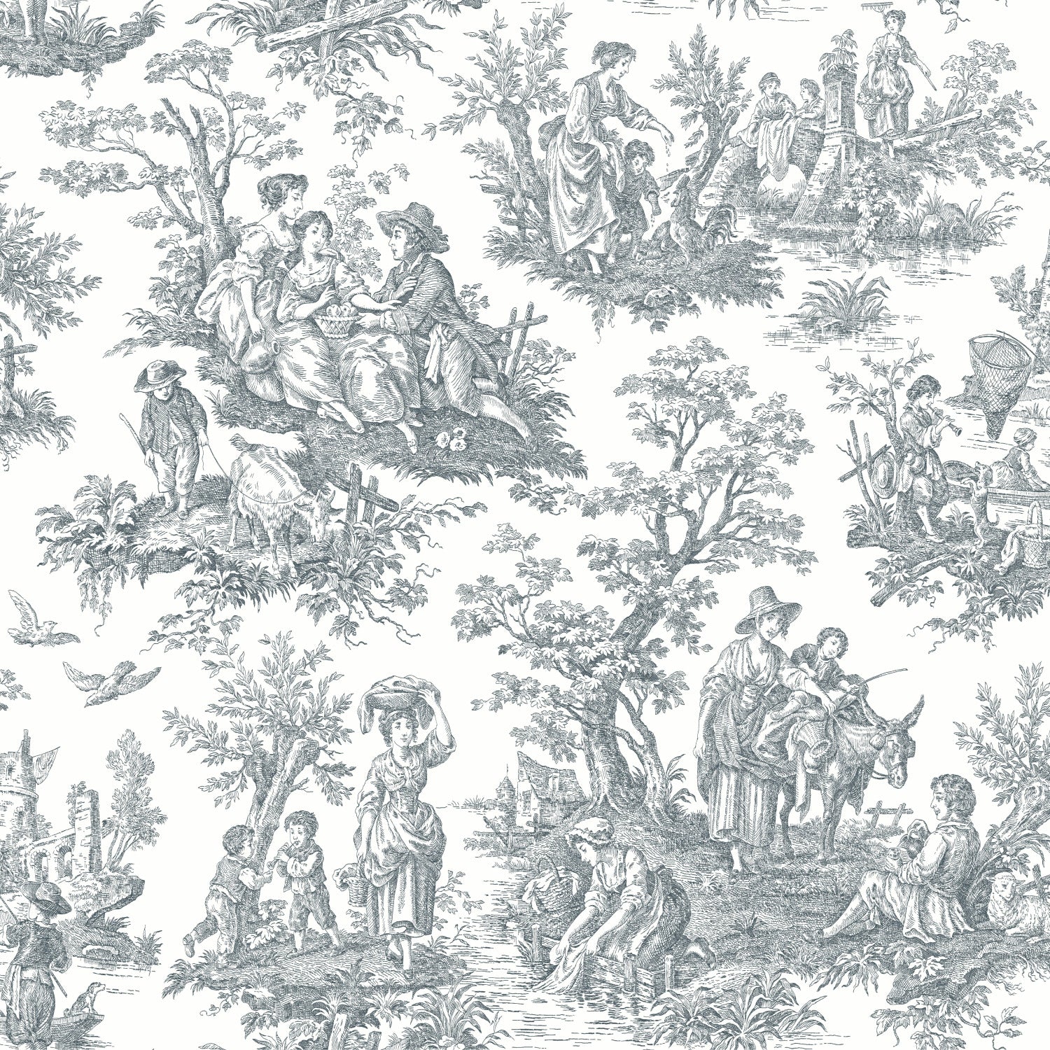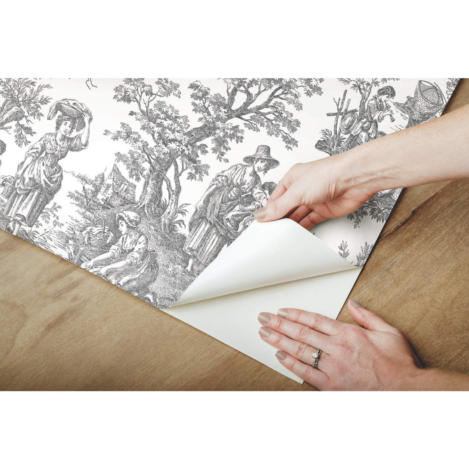 York Wallcoverings RoomMates Country Life Toile Grey Peel and Stick Wallpaper Country Global Greys Wallpaper - RMK11869WP