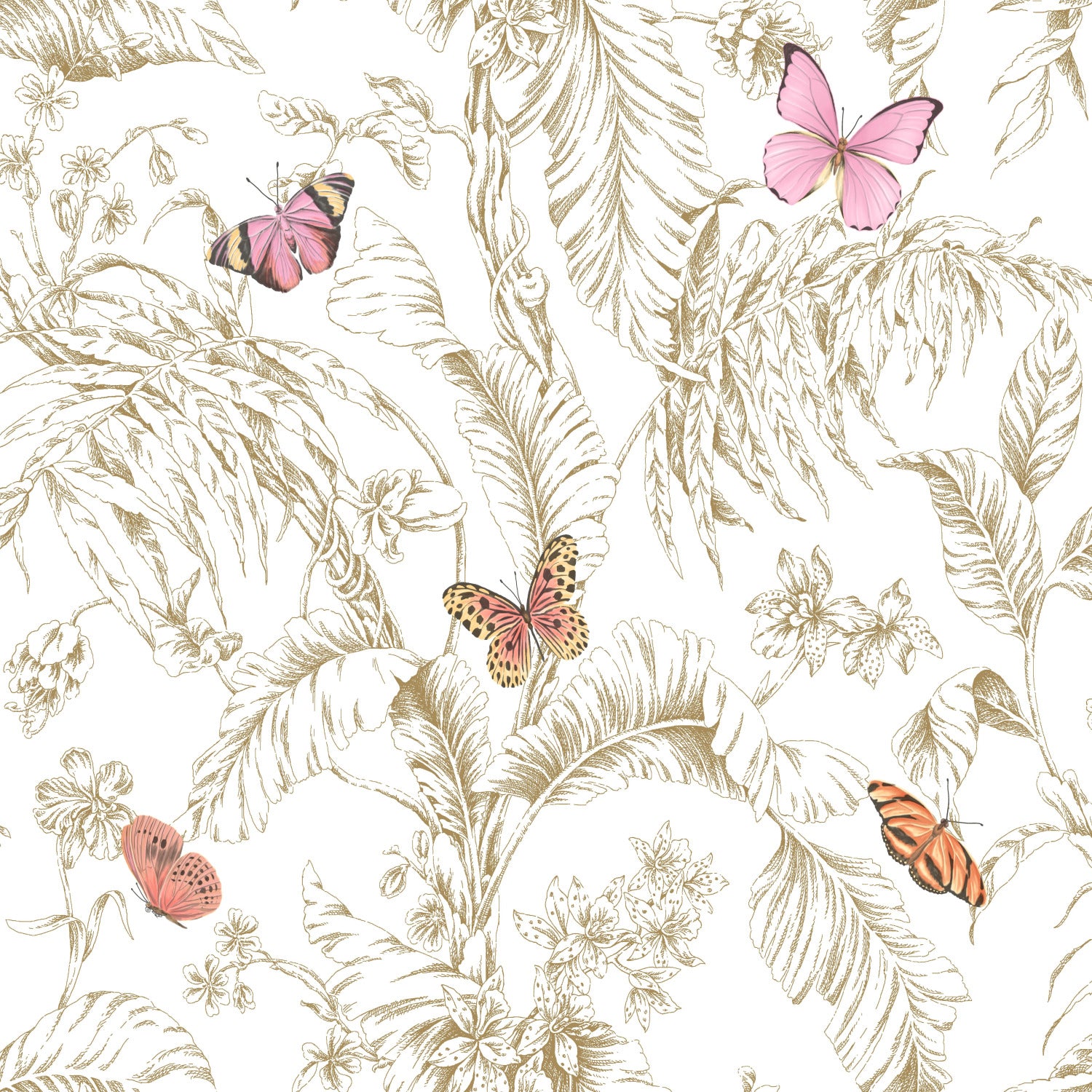 York Wallcoverings RoomMates Butterfly Sketch Pink Peel and Stick Wallpaper Whimsical Botanical Pinks Wallpaper - RMK11911WP