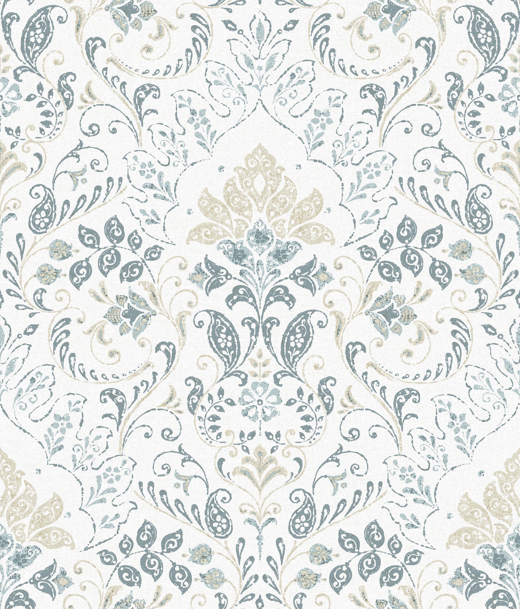 Pattern: RMK11998WP / Persian Damask Blue Peel and Stick Wallpaper