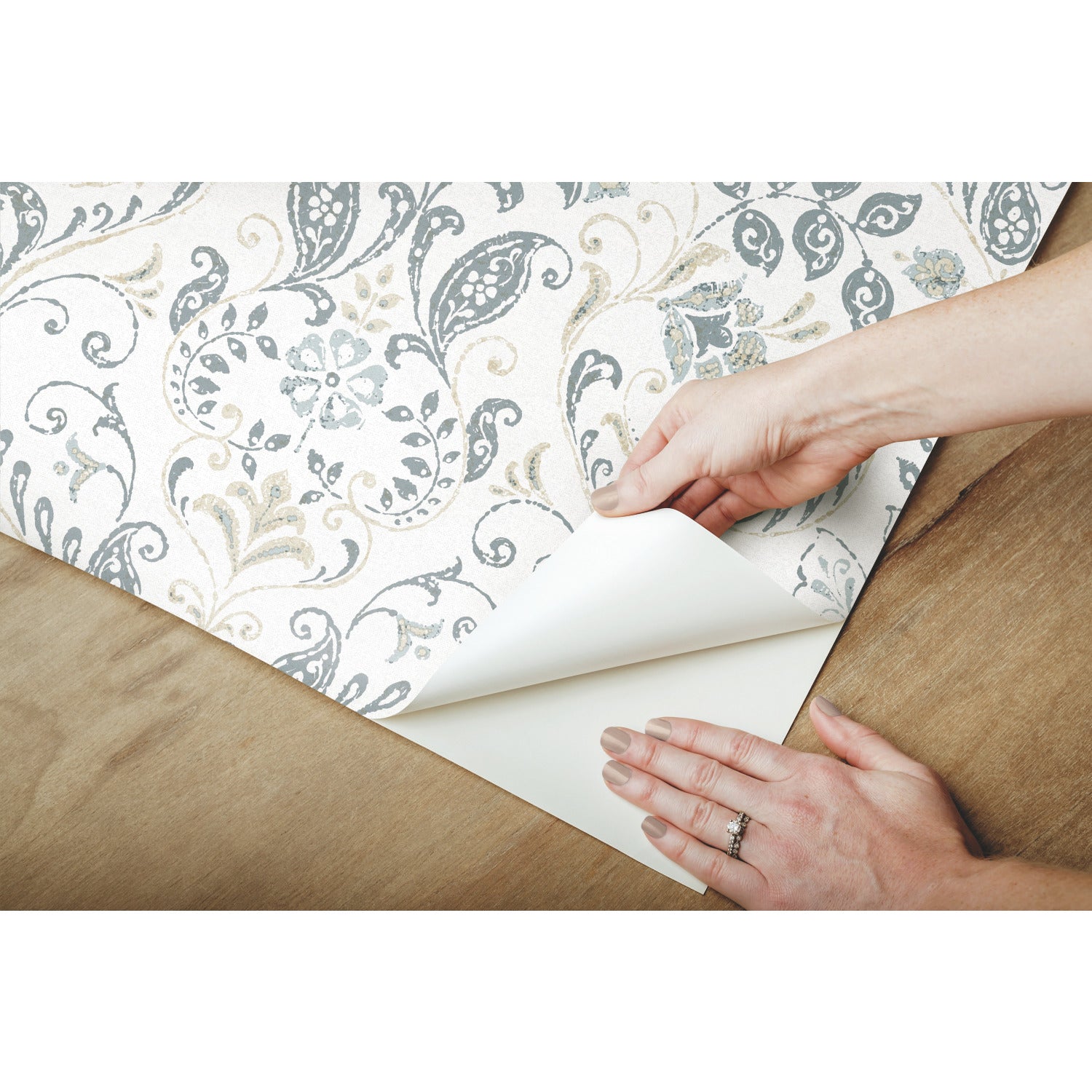 Use:Drawing from one of the richest art heritages in the world, the dense decoration of Persian Damask peel and stick wallpaper from RoomMates is an elegant addition to any home where classic design is desired. Harmonious motifs scrolling around a center medallion are blended together in soft warm light background with accents of soothing neutrals from gray through sand beige, making this a quintessential choice for the walls of refined homes. RoomMates peel and stick wallpapers are an easy and affordable way to decorate. Peel off the paper backing and smooth onto the wall, no additional adhesive required. When it?s time to redecorate, simply remove them effortlessly in full strips with no remaining sticky residue or damage to walls.