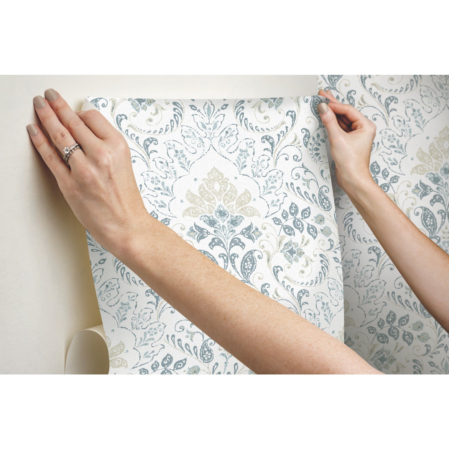 York Wallcoverings RoomMates Persian Damask Blue Peel and Stick Wallpaper Traditional Global Blues Wallpaper - RMK11998WP