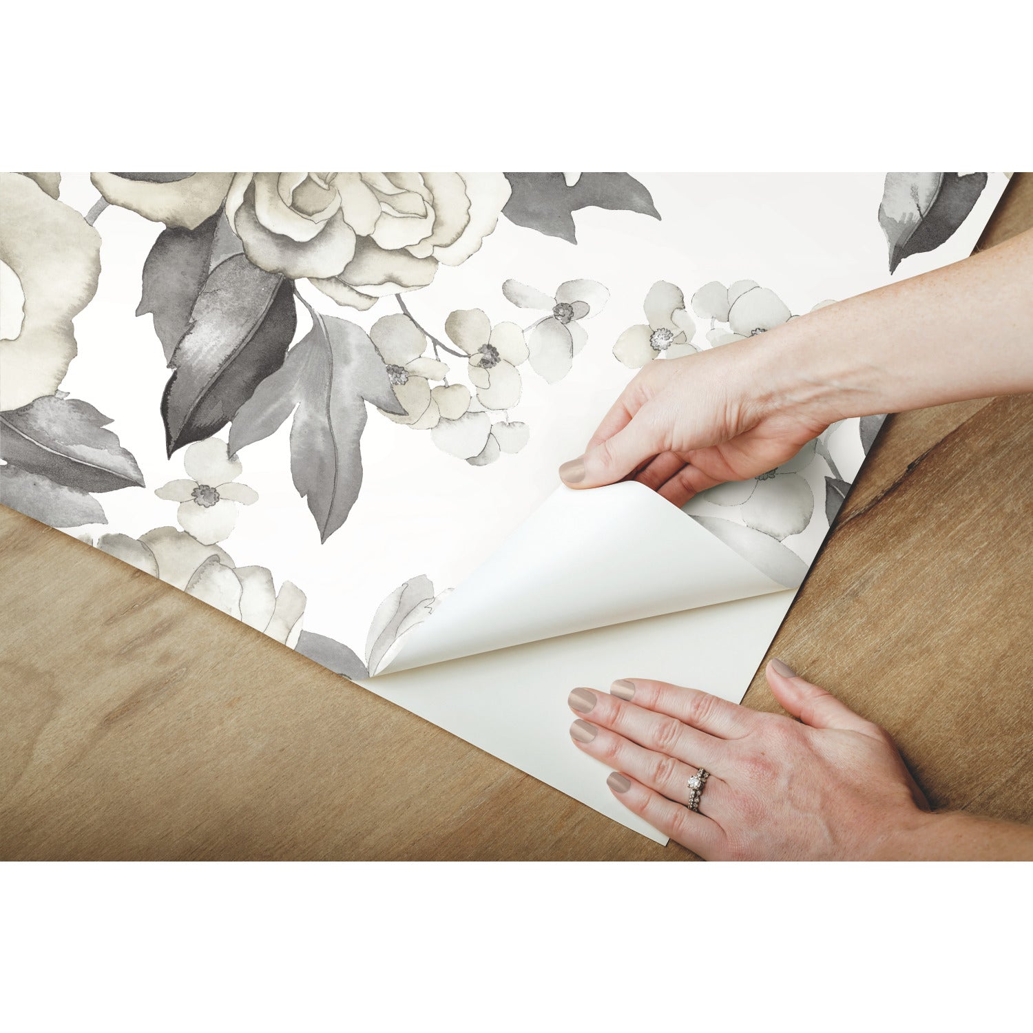 Use:A pretty burst of blooms brings the beauty of the garden into your home with Watercolor Floral Bouquet peel and stick wallpaper from RoomMates. Peonies, roses and flowers that suggest extravagant bushes with a multitude of blossoms are rendered in watercolor effect with a lovely palette of soft creams and taupes with gray tonal leaves. This romantic design is a compliment to white and natural furniture, brushed nickel accent decor, or to mellow contemporary furniture lines in any room in the home. RoomMates peel and stick wallpapers are an easy and affordable way to decorate. Peel off the paper backing and smooth onto the wall, no additional adhesive required. When it?s time to redecorate, simply remove them effortlessly in full strips with no remaining sticky residue or damage to walls.