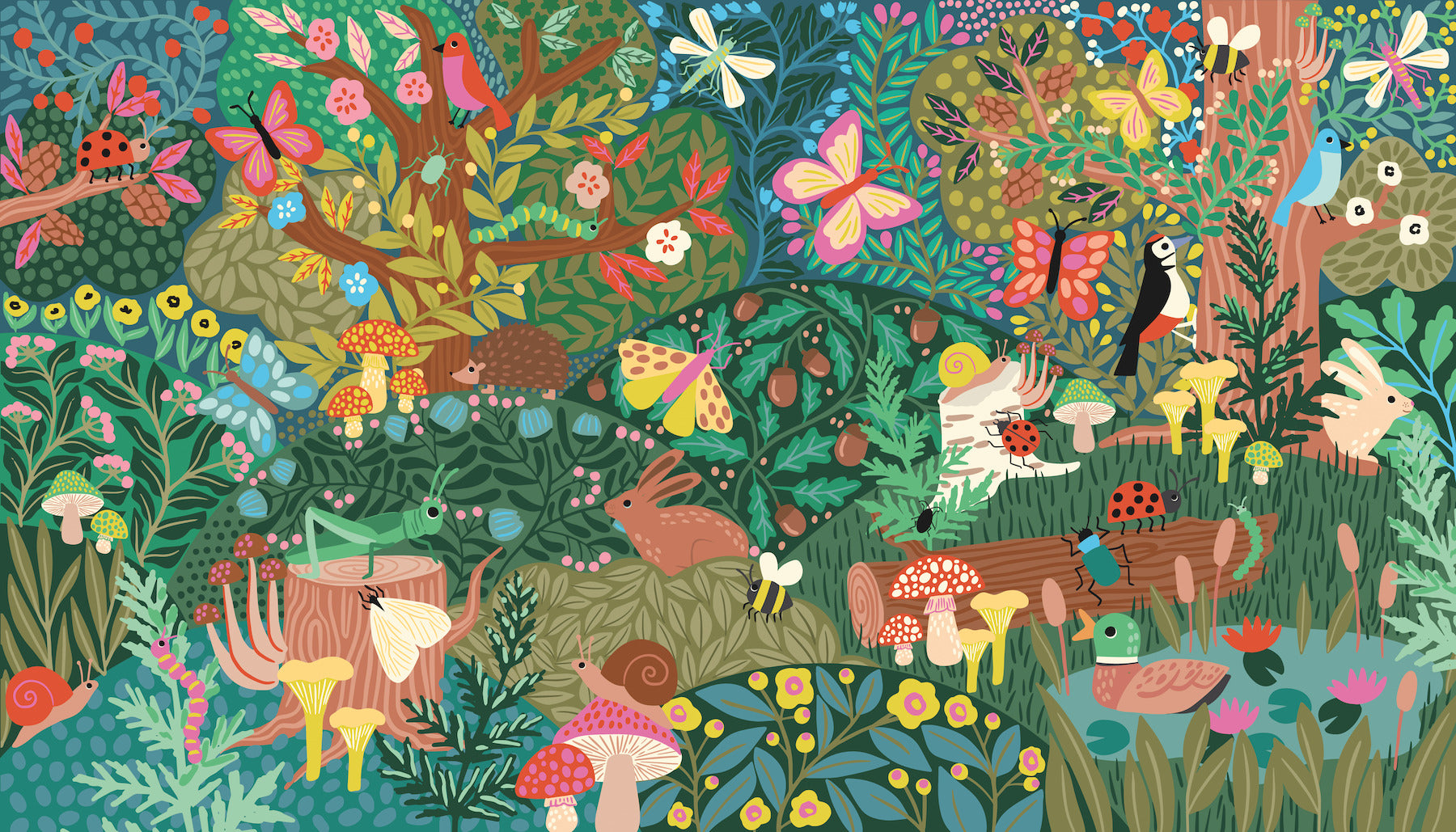 Use:Your favorite forest animals are arranged in a pretty patchwork woods design in Woodland Wonderland peel and stick wall mural from RoomMates. Hedgehogs, bunnies, ducks, grasshoppers, birds, butterflies and ladybugs are nestled into a cheerful arrangement of flowers, ferns, moss, leaves and trees. A pretty color palette in shades of green, pink, blue, and beige gives the room a naturally happy ambiance. This mural is a great addition to a focal wall, adding interest to any room where nature inspirations are a favorite. RoomMates peel and stick wallpapers are an easy and affordable way to decorate. Peel off the paper backing and smooth onto the wall, no additional adhesive required. When it?s time to redecorate, simply remove them effortlessly in full strips with no remaining sticky residue or damage to walls.