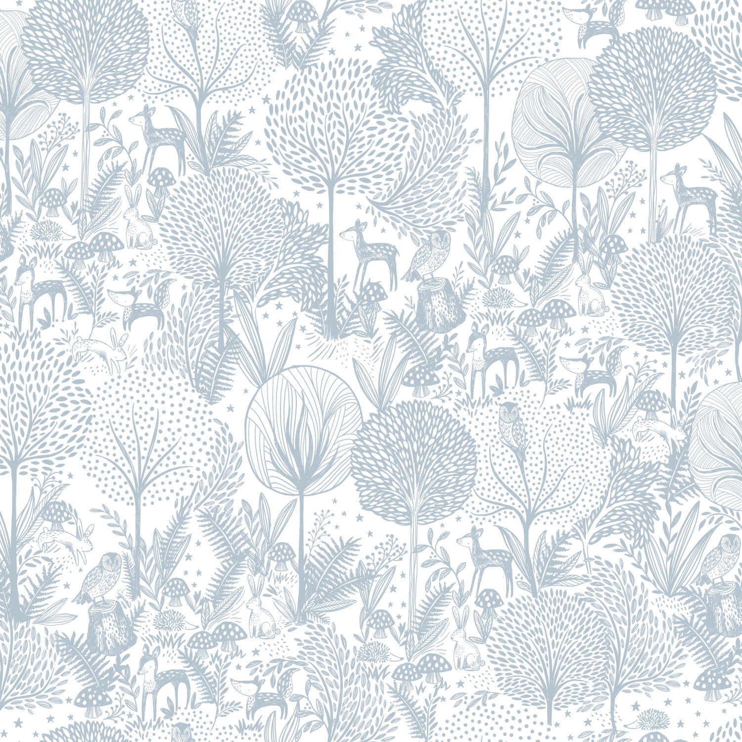 Use:A whimsical glade in the forest surrounds the kindly animals who live within its protection in this toile-like Forest Friends peel and stick wallpaper from RoomMates. Gentle deer, friendly bunnies, wise owls and furry fox play among the ferns and toadstools that carpet the forest floor. Shades of slate blue and softest white create a color palette that is pleasing for boys and girls alike. Peel and stick wallpapers are an easy and affordable way to decorate; simply peel off the paper backing and smooth onto the wall. When it?s time to redecorate, remove in full strips with no remaining sticky residue or damage to walls.