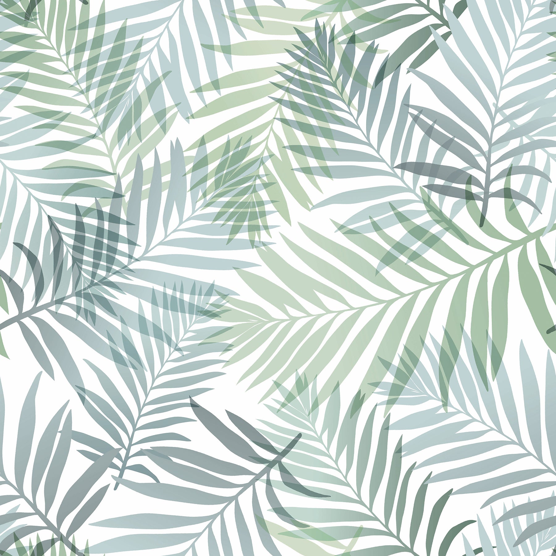 Use:Looking to create a beautifully botanical accent wall? Or a tropical getaway in your own home? Lush and lively, this blue and green botanical print is perfect for any space that needs a boost of serene energy! Green palm fronds sway in the breeze in this peel and stick wallpaper print. Installation is as simple as Peel, Stick...Done!?