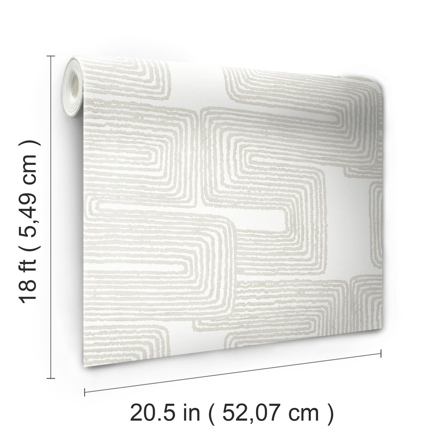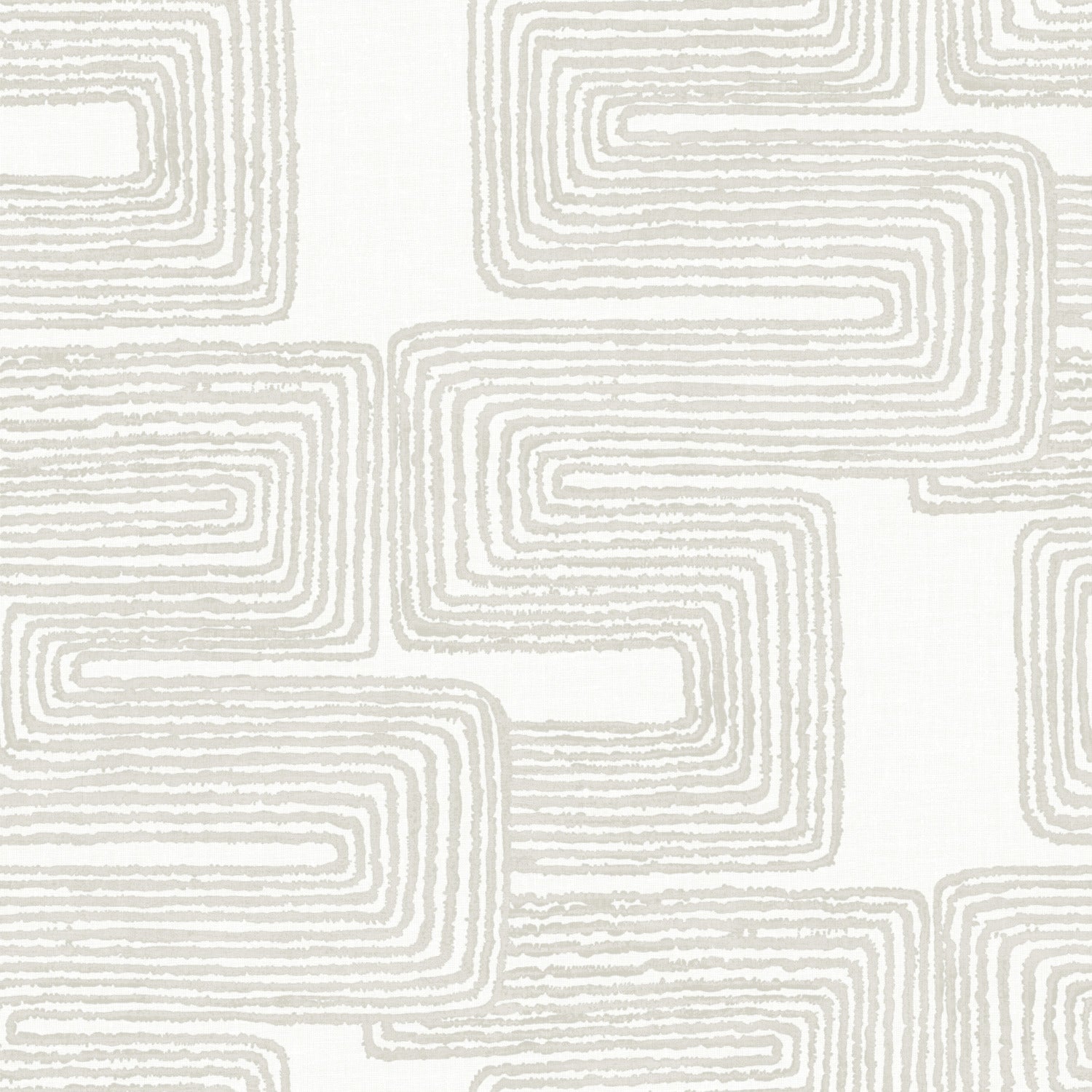 Use:The rich heritage of South African tribal design is masterfully captured in this rectangular block key motif in Zulu Signature peel and stick wallpaper by Nikki Chu for RoomMates with its ivory background and jute sand beige layered roping effect cleverly stacked in chunky continuous rectangles.
