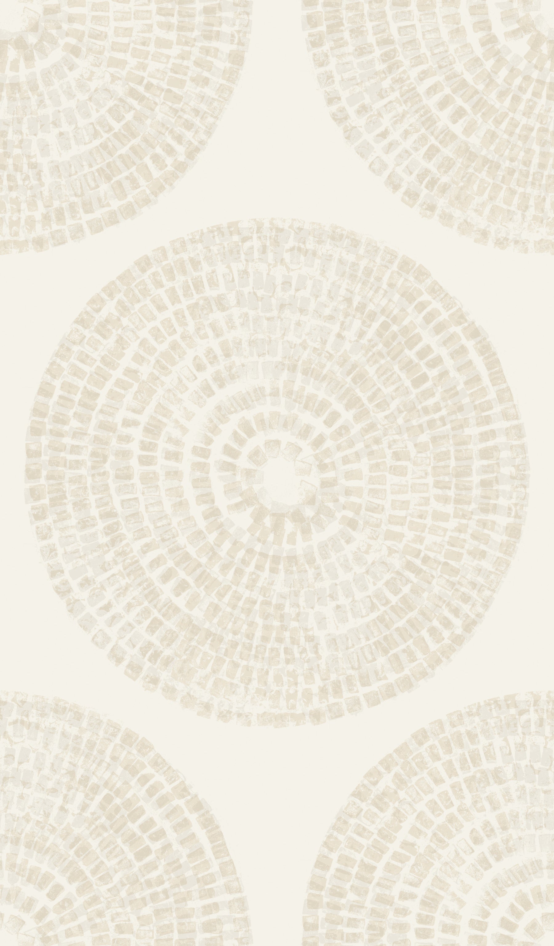 Use:This tribal print inspired by hero?s medals and cleverly shaped by rings of expanding circles, is grand in scale while subtle in its light neutral coloration in Medali peel and stick wallpaper by Nikki Chu for RoomMates.