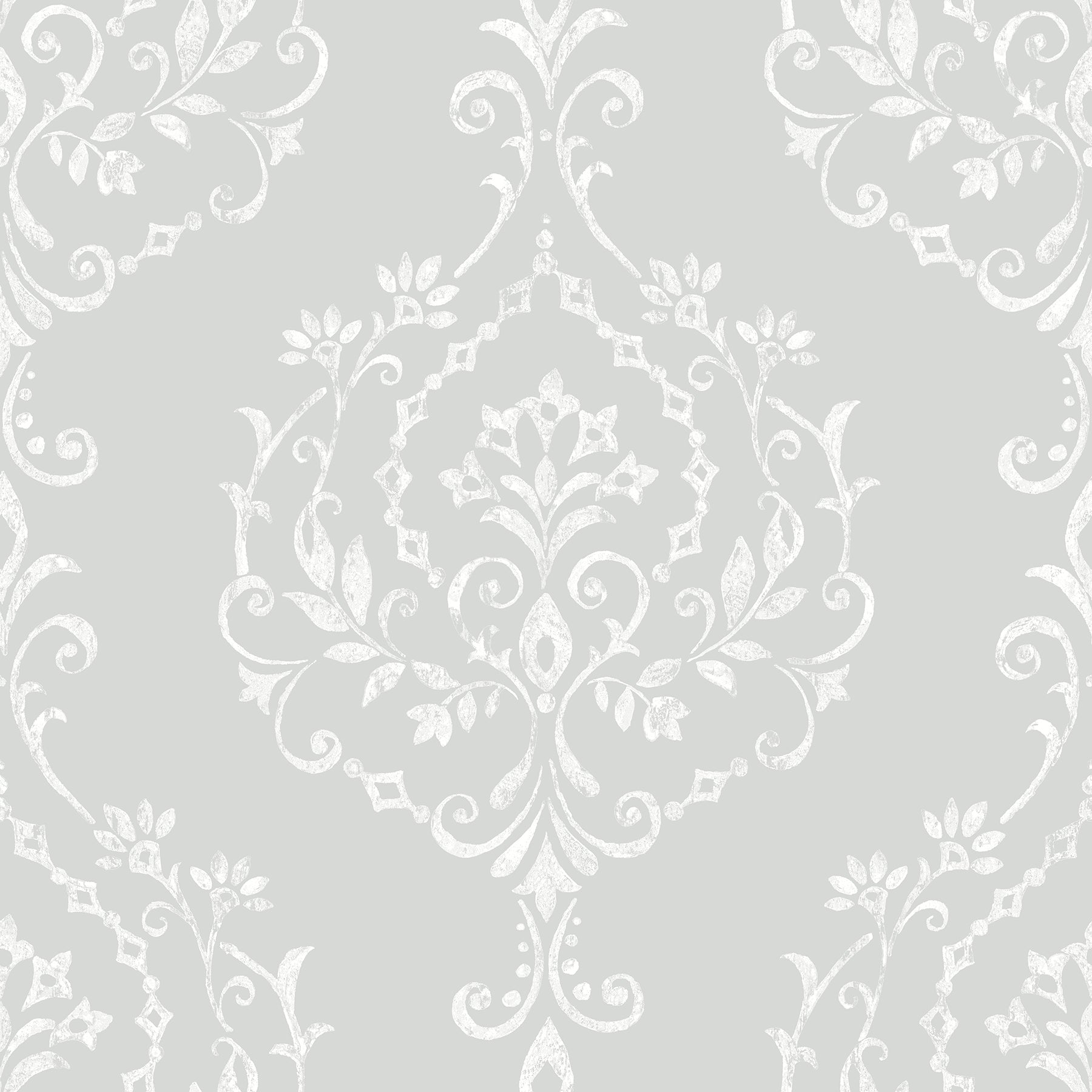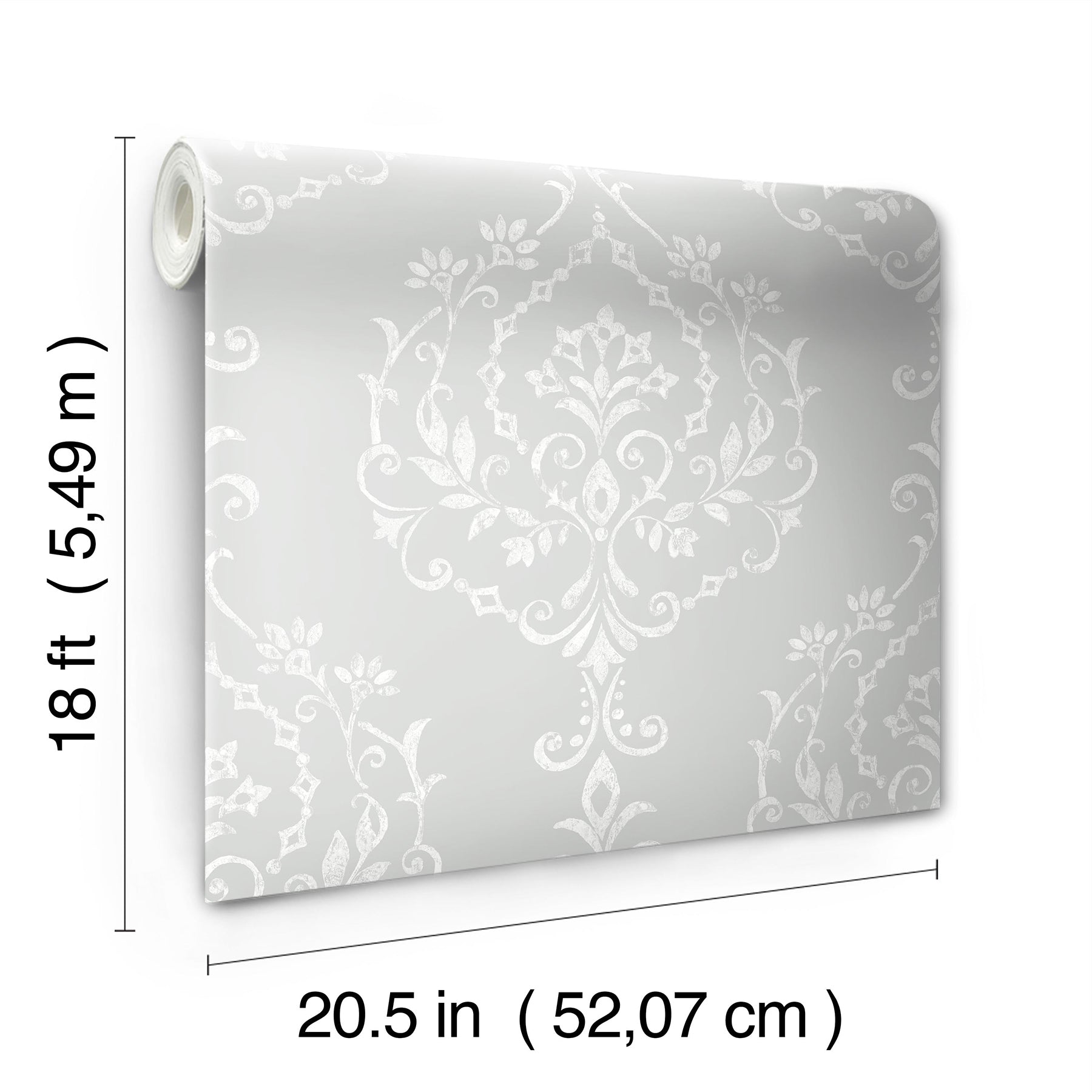 Pattern: RMK12258PL / New Damask Grey Peel and Stick Wallpaper