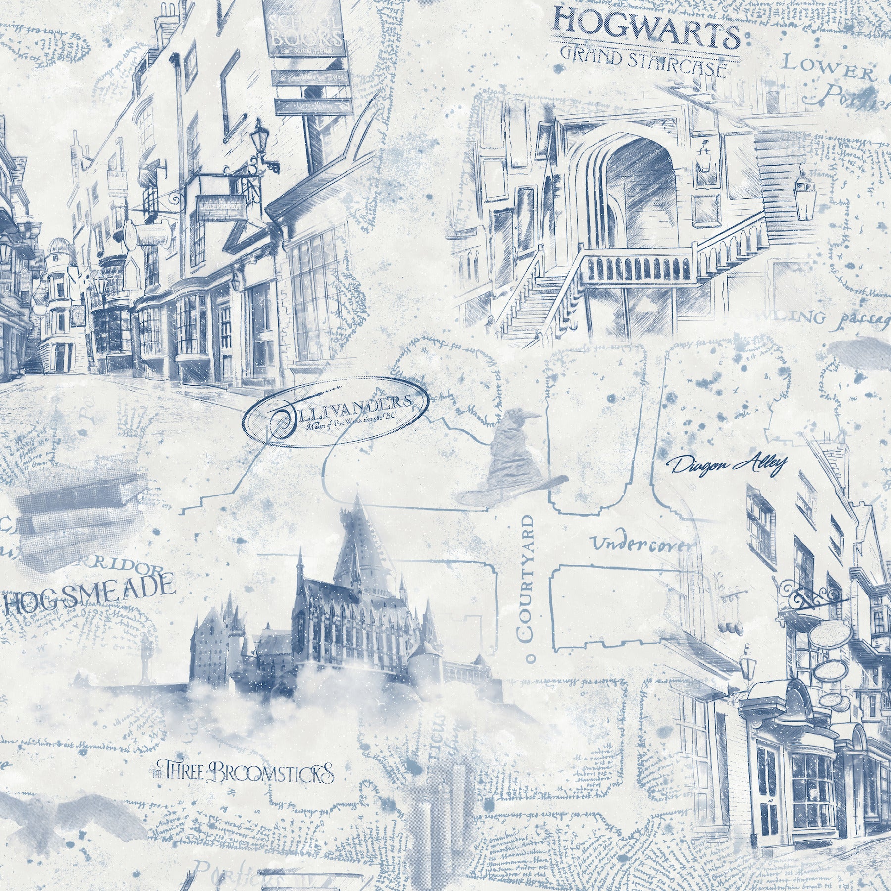 York Wallcoverings RoomMates Harry Potter Map Blue Peel and Stick Wallpaper Whimsical Licensed Blues Wallpaper - RMK12355PL