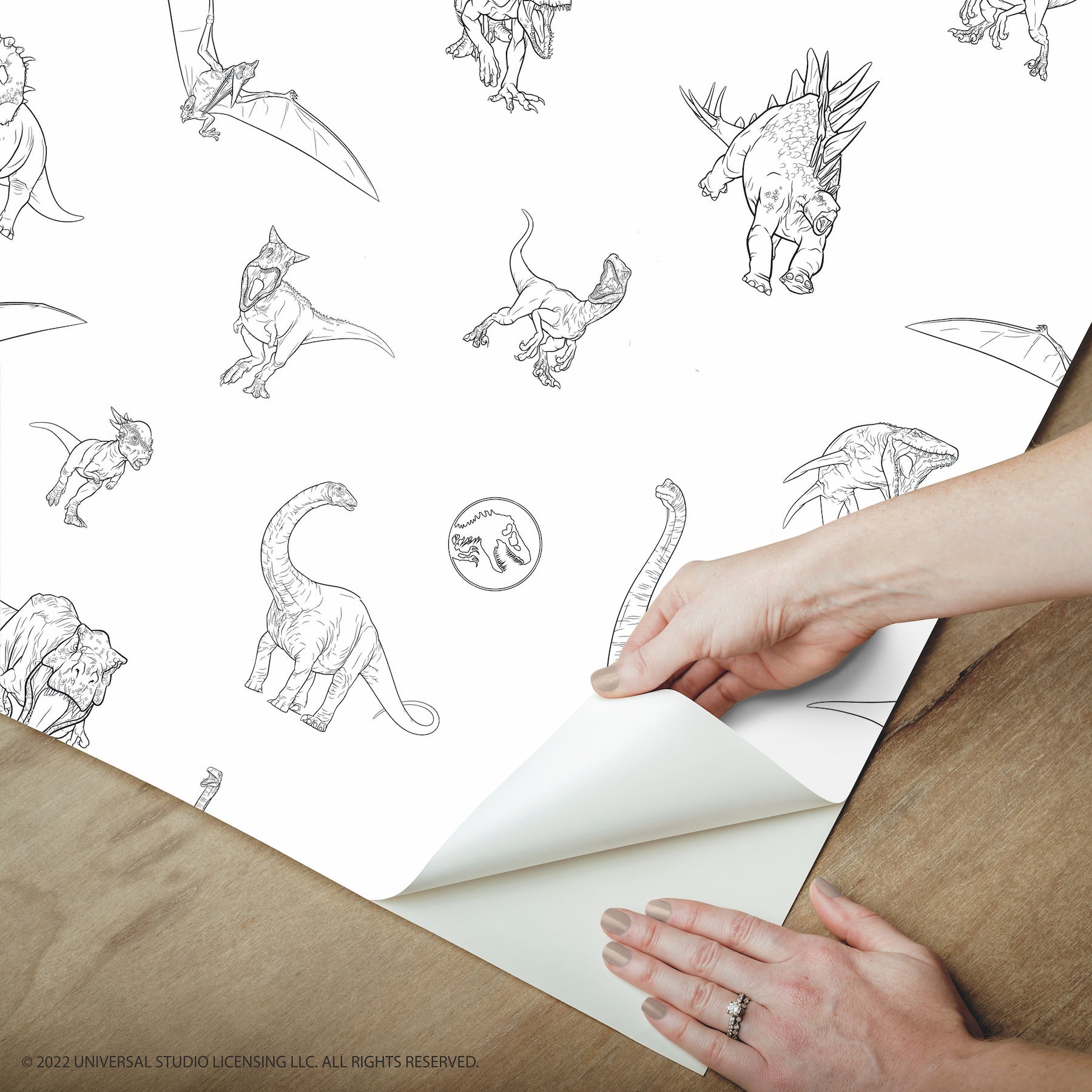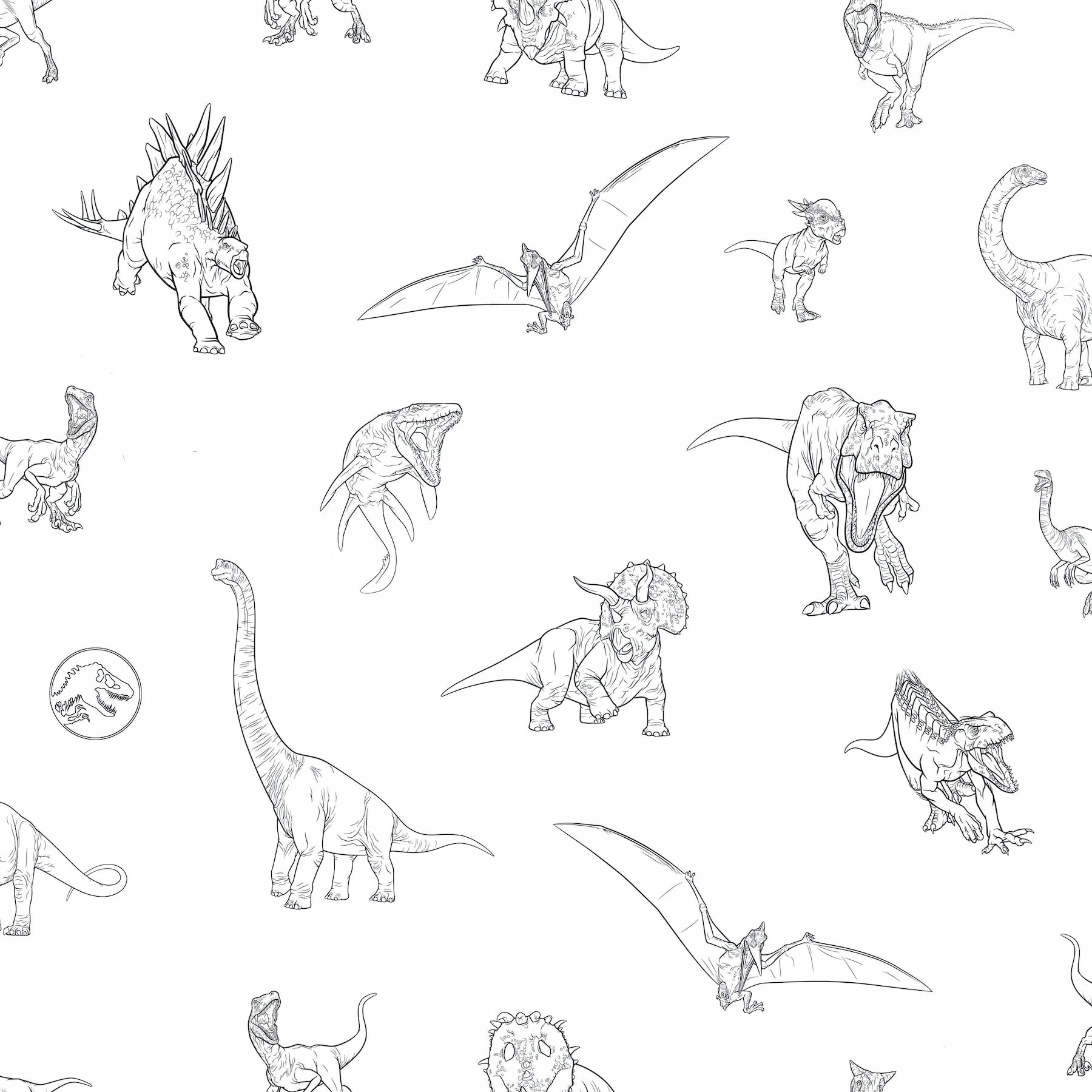 Use:Dinosaurs abound in this totally awesome, black and white, Jurassic World Line Art Peel