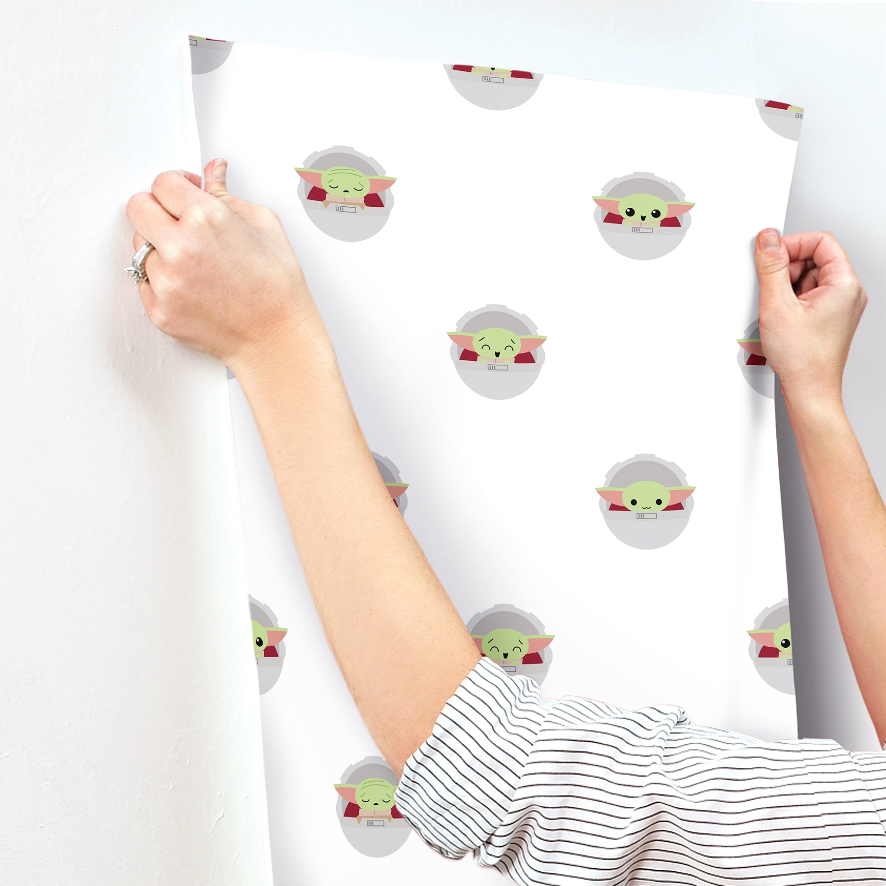 Use:Calling all Mandalorian fans! The Force is extremely strong with this officially-licensed Grogu? Peel and Stick Wallpaper. Deck out your walls with Grogu? and his many facial expressions in as little as Peel, Stick...Done!? Cute as can be, this peel and stick wallpaper is perfect for any nursery or bedroom!