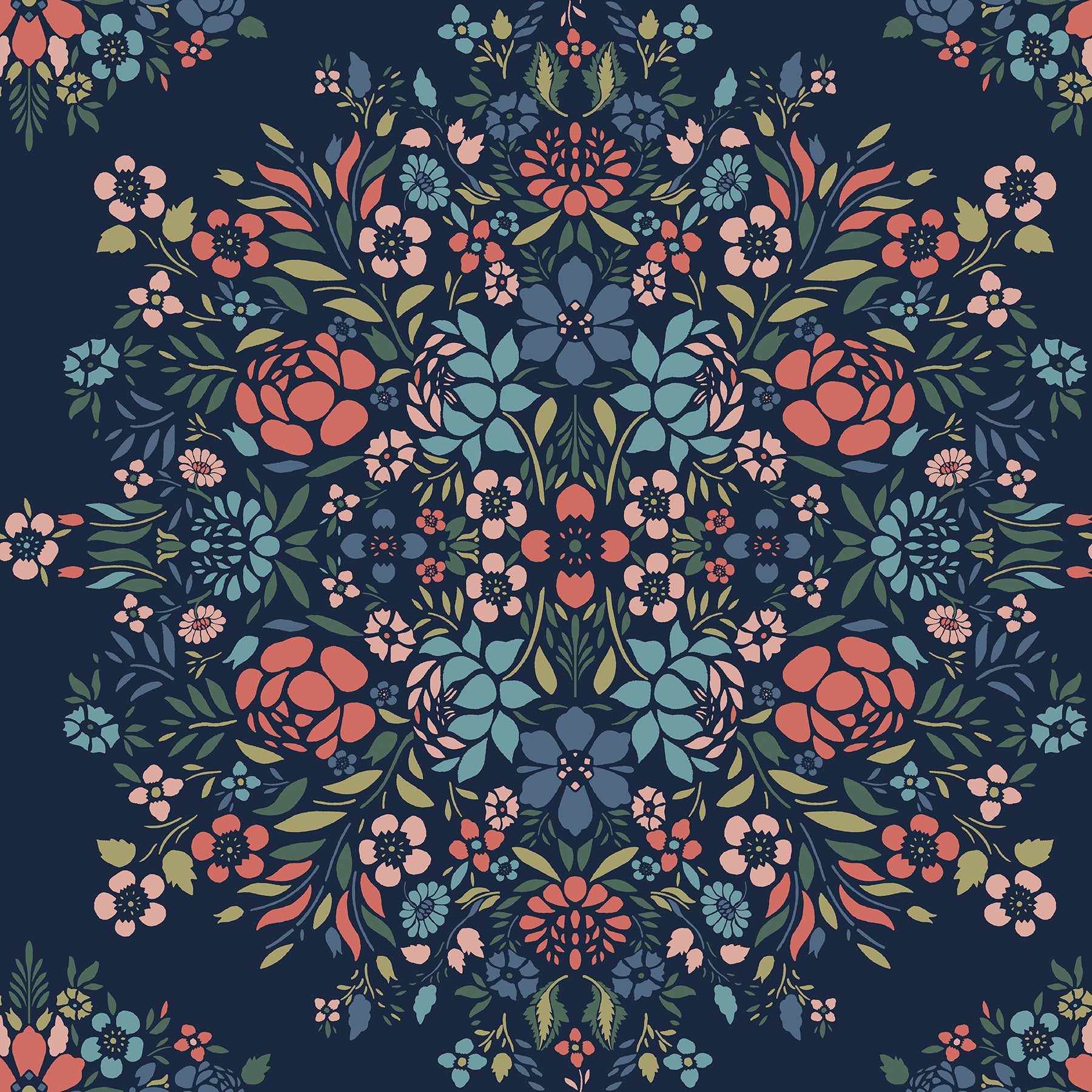Use:Wonderfully boho, this floral medallion print is sure to add a splash of whimsical beauty into any space! Bright and lively florals spread across navy paper in a medallion formation. Installation is as simple as Peel, Stick...Done!?