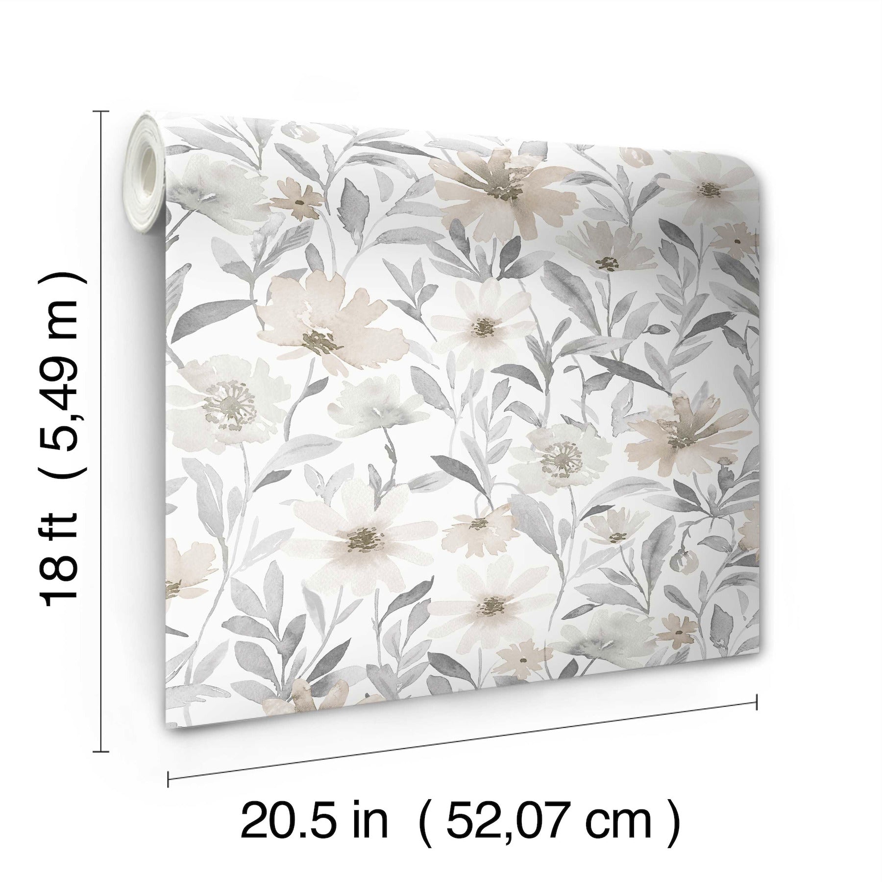 York Wallcoverings RoomMates Flower Market Neutral Peel and Stick Wallpaper Botanical Neutrals Wallpaper - RMK12635PL