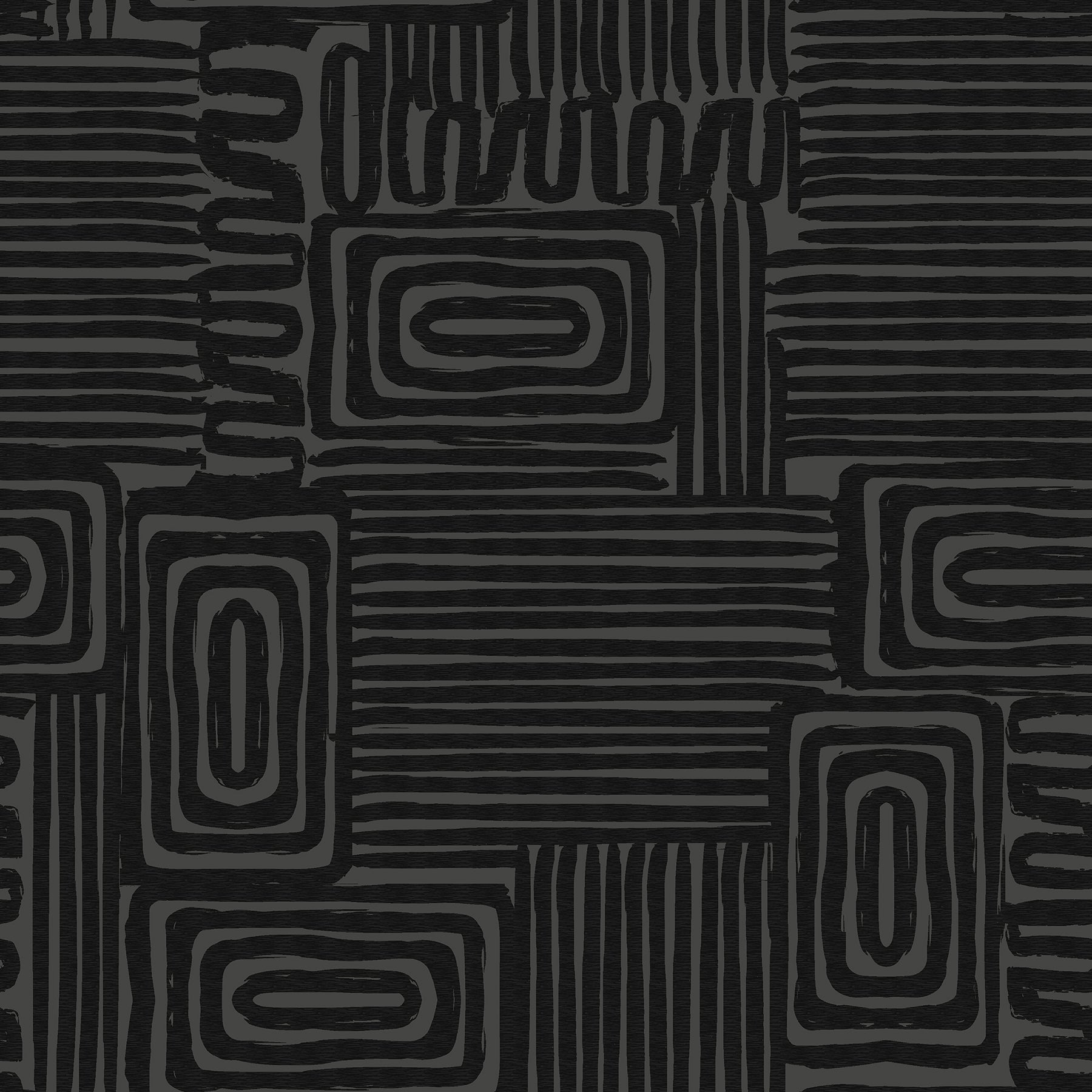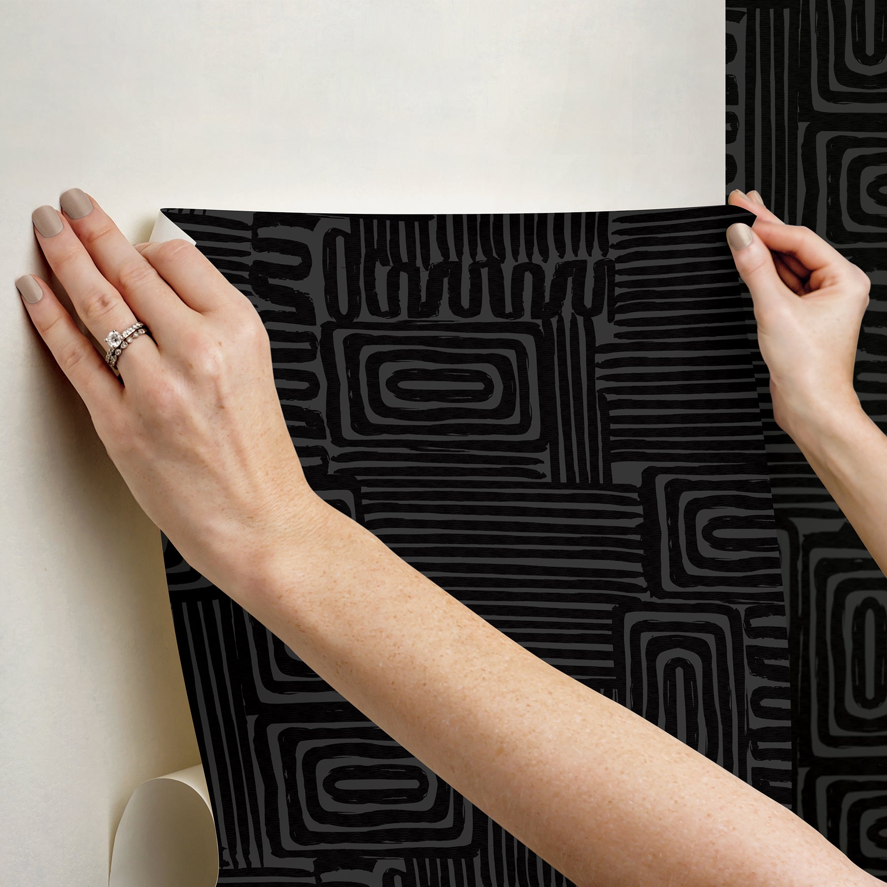 Use:Based on the nonlinear manner of life, this peel and stick wallpaper designed by Emily Shaw (@emilyrayna) brings the organic nature of the individual's journey to your walls. A black labyrinth of geometrics coasts over a charcoal backdrop. Black Pathways Peel and Stick Wallpaper comes on one roll that measures 20.5 inches wide by 18 feet long.