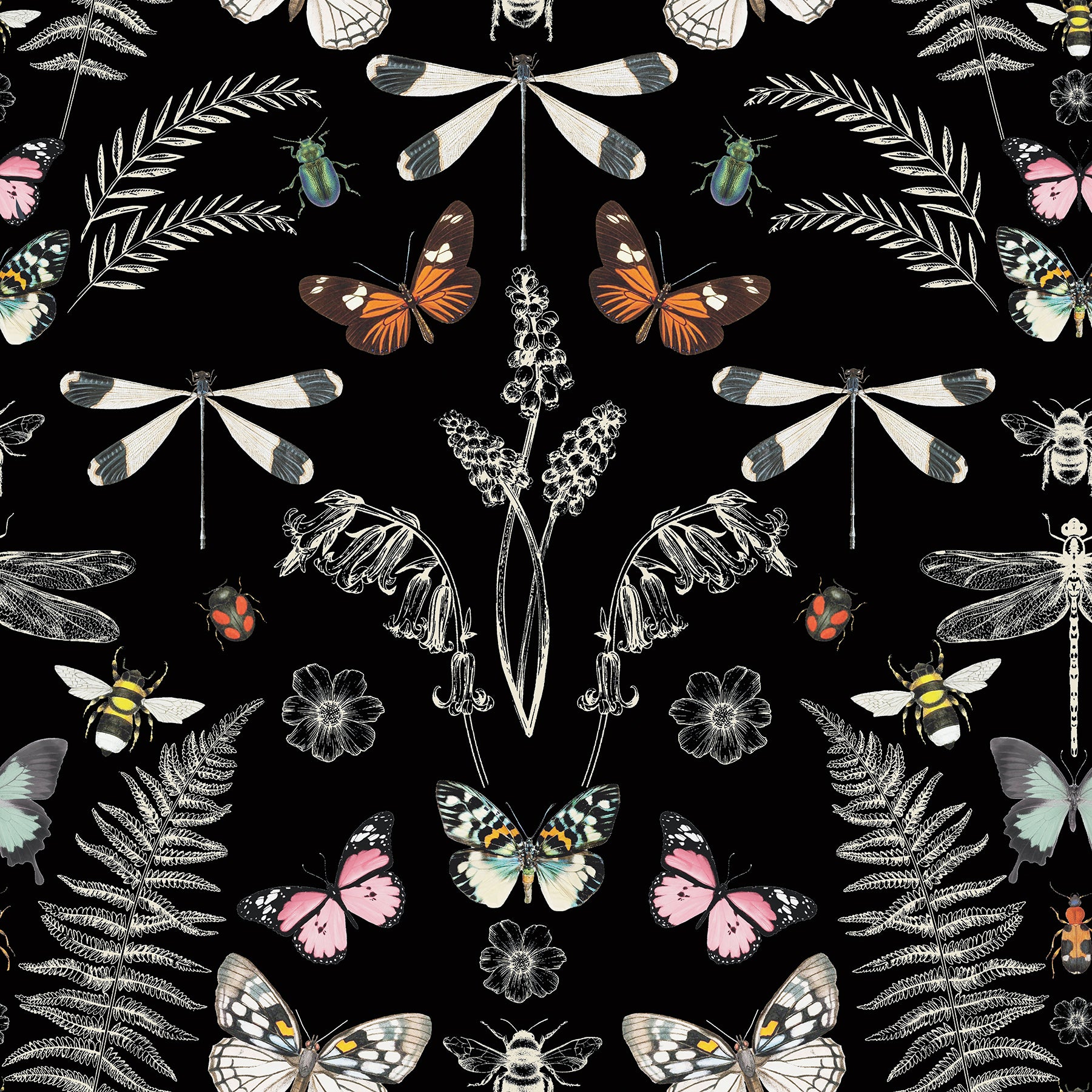 Use:Inspired by the vintage botanical and insect displays full of curiosities and creatures, this peel and stick wallpaper is a great accent for any space in need of some bookish charm. A variety of insects and lush fronds are arranged over a black backdrop. Installation is as simple as Peel, Stick...Done!? Hidden Treasures Black Peel and Stick Wallpaper comes on one roll that measures 20.5 inches wide by 18 feet long.