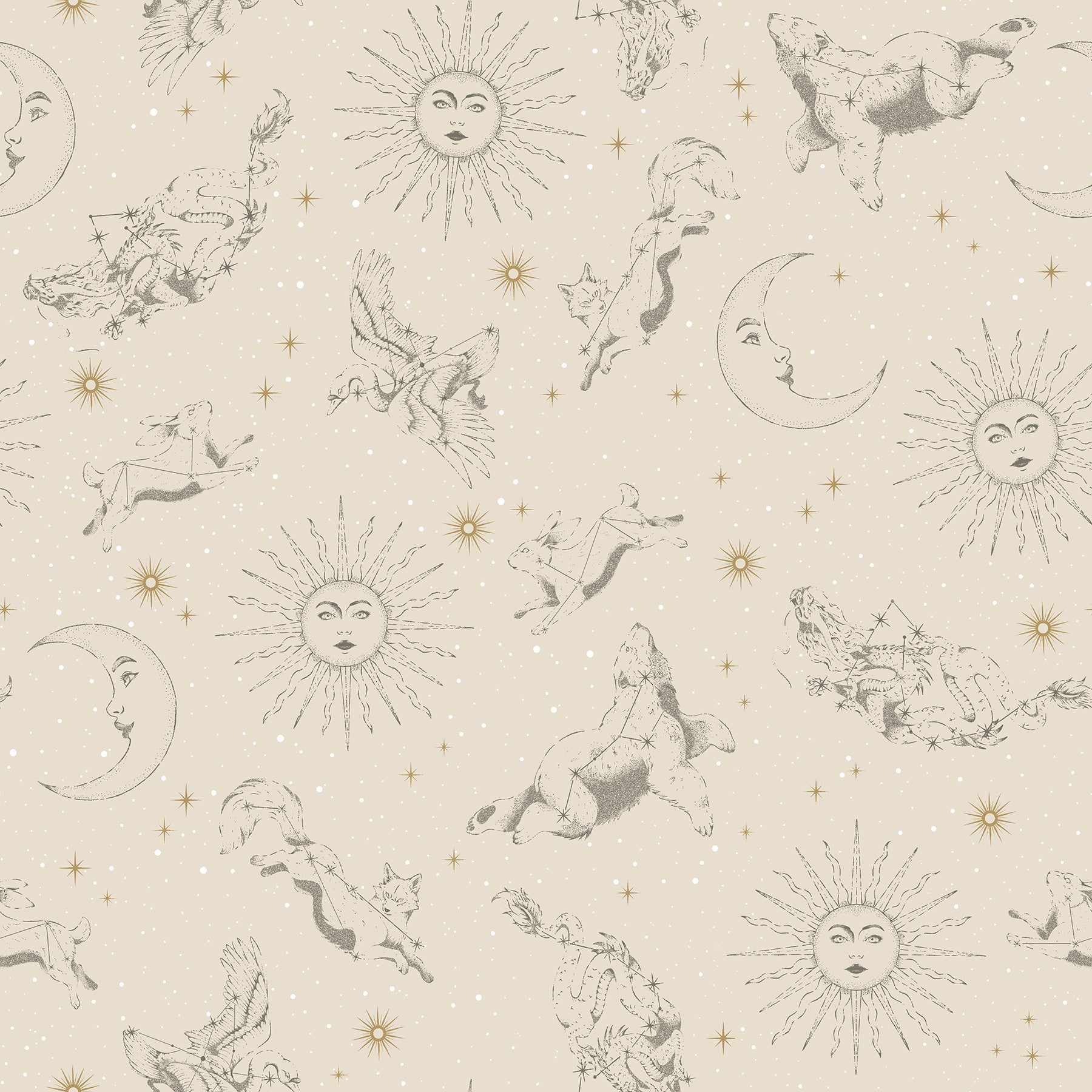 York Wallcoverings RoomMates Zodiac Dreams Linen Peel and Stick Wallpaper Modern Outer Space Neutrals Wallpaper - RMK12752PLW