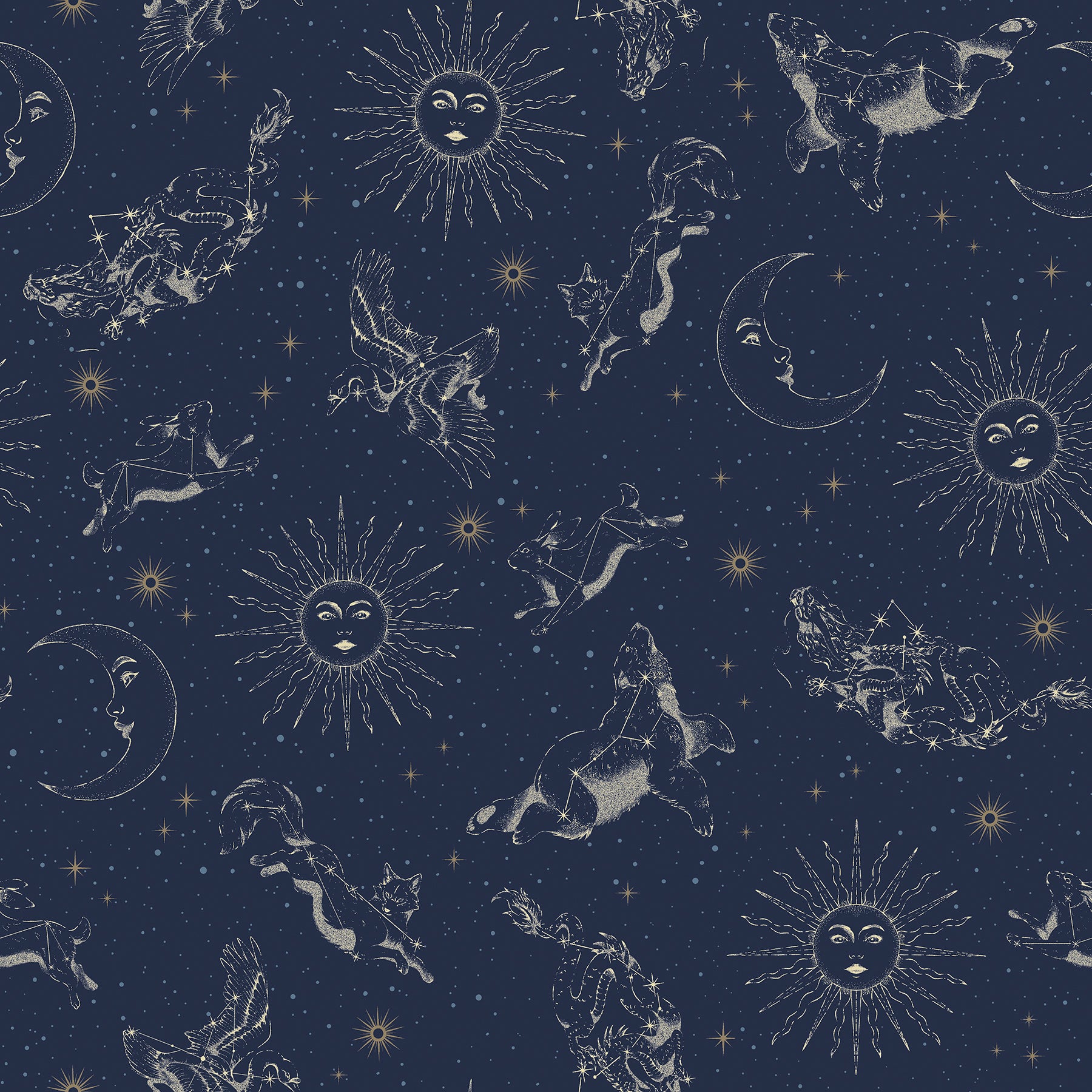 Use:Bring bookish charm to your space with this celestial peel and stick wallpaper by RoomMates. Astrological constellations and celestial bodies are arranged atop a navy blue backdrop. Zodiac Dreams Navy Peel and Stick Wallpaper comes on one roll that measures 20.5 inches wide by 18 feet long.