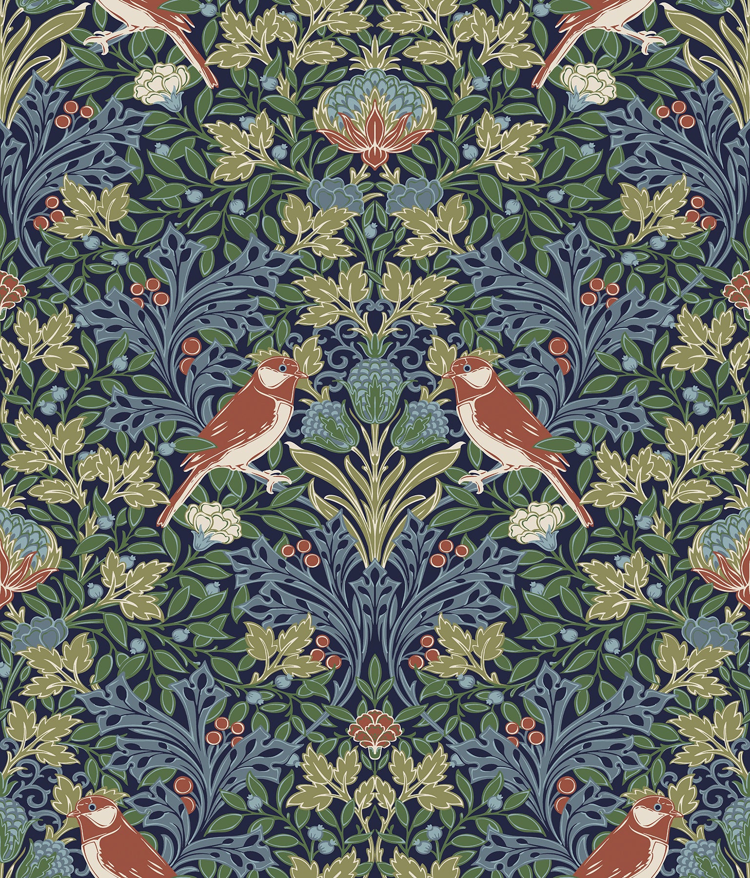 Size : Blue and red peel and stick wallpaper from RoomMates D??cor featuring a botanical damask pattern with birds..Peel and stick to apply, pull up to remove.RoomMates Peel and Stick Wallpaper is safe for walls and leaves no sticky residue behind.Easily repositionable while installing.RoomMates Peel and Stick Wallpaper sticks to any smooth, flat surface - perfect for DIY projects.Ideal for rental or home decorating.Comes on a 20.5-in x 18-ft roll and covers about 30.8 sq. ft.Design repeat of 24-in.This product should NOT be applied to textured walls - smooth clean, dry, painted surface only (no Non-Stick paint or soap residue)