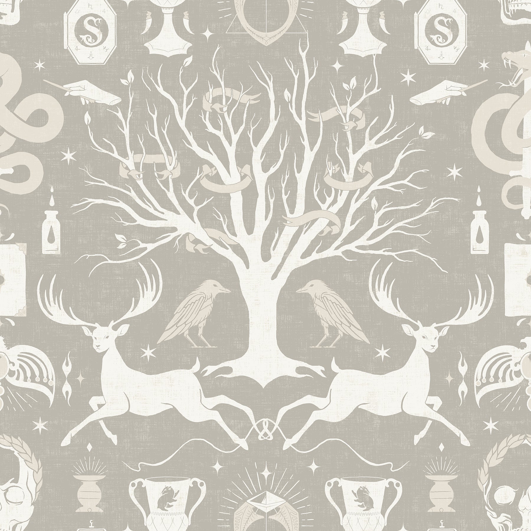 Use:Embrace the wonder of Harry Potter? while adding a touch of elegance and wizarding whimsy to your home with this officially licensed Harry Potter Horcrux Damask peel and stick wallpaper. Featuring a forest scene with the silhouettes of Patronuses, the Whomping Willow? , and the 7 Horcruxes, this damask print is the perfect backdrop for any Harry Potter lover?s space, and installs in just Peel, Stick?Done!? Harry Potter Horcrux Damask Grey Peel and Stick Wallpaper comes on one roll that measures 20.5 inches wide by 18 feet long.
