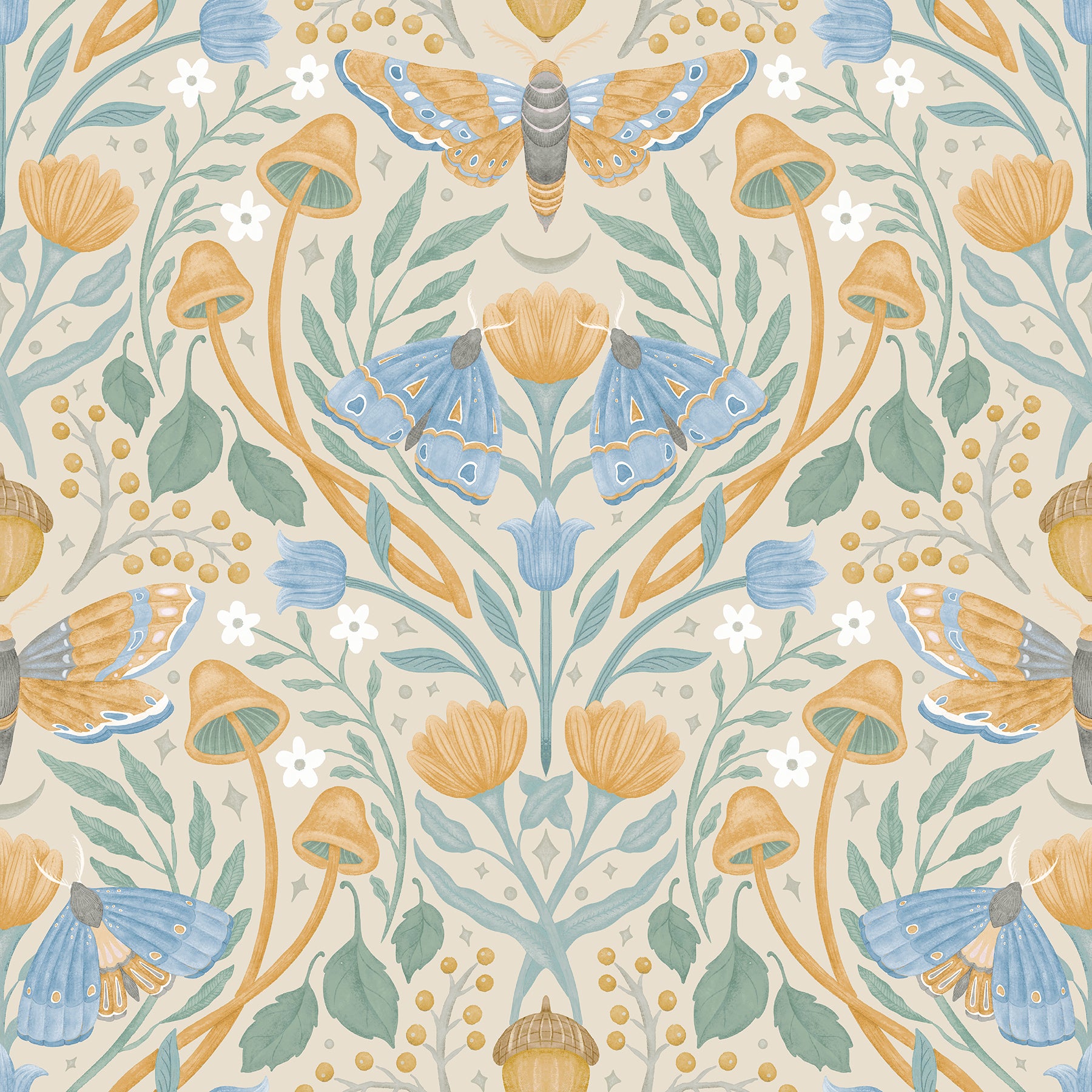 Use:Add some woodland whimsy to your space with this enchanted forest peel and stick wallpaper by RoomMates D??cor. Charming mushrooms and foliage make way for graceful moths and butterflies in this cottagecore damask print. Enchanted Forest Damask Orange Peel and Stick Wallpaper comes on one roll that measures 20.5 inches wide by 18 feet long.