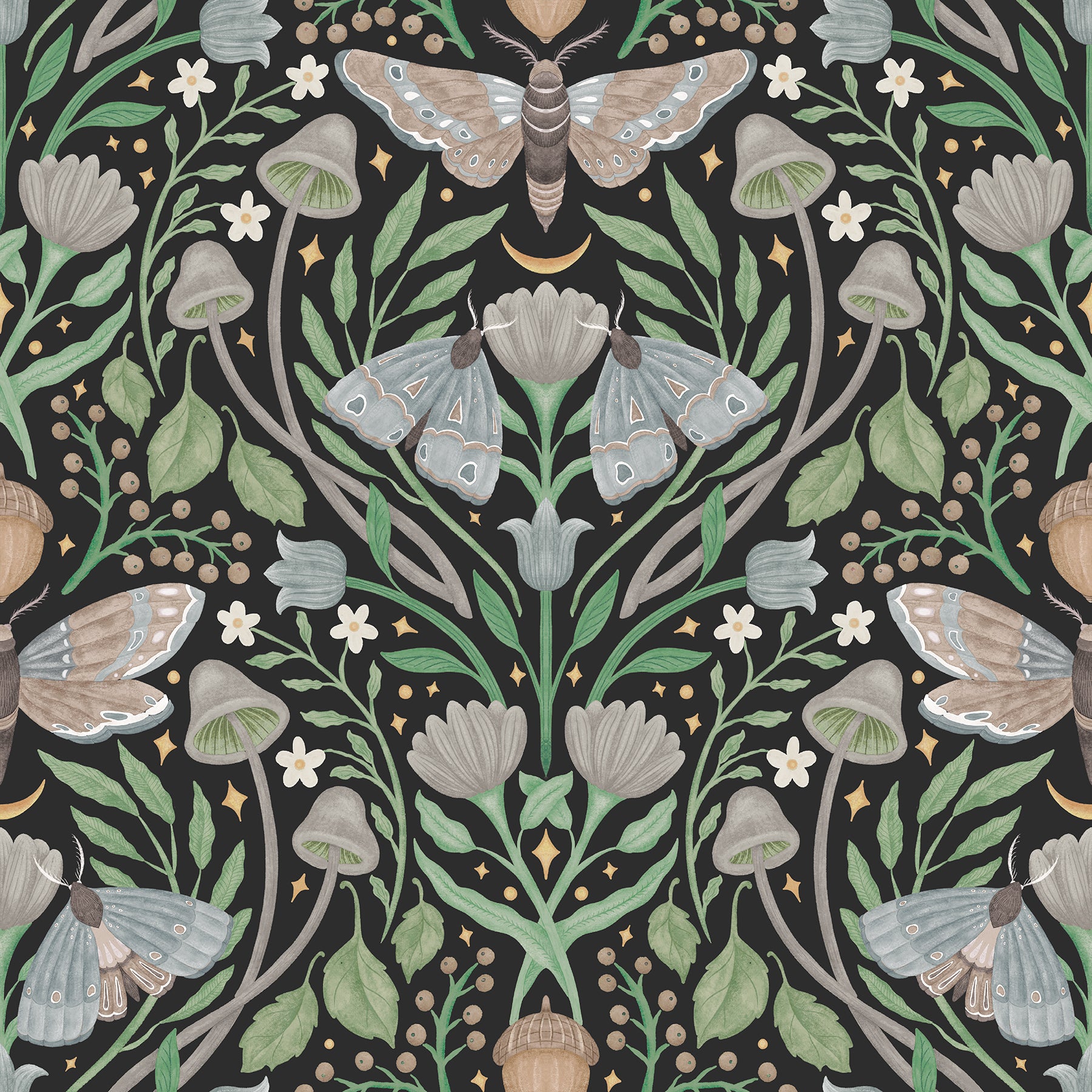 Use:Add some woodland whimsy to your space with this enchanted forest peel and stick wallpaper by RoomMates D??cor. Charming mushrooms and foliage make way for graceful moths and butterflies in this cottagecore damask print. Enchanted Forest Damask Black Peel and Stick Wallpaper comes on one roll that measures 20.5 inches wide by 18 feet long.