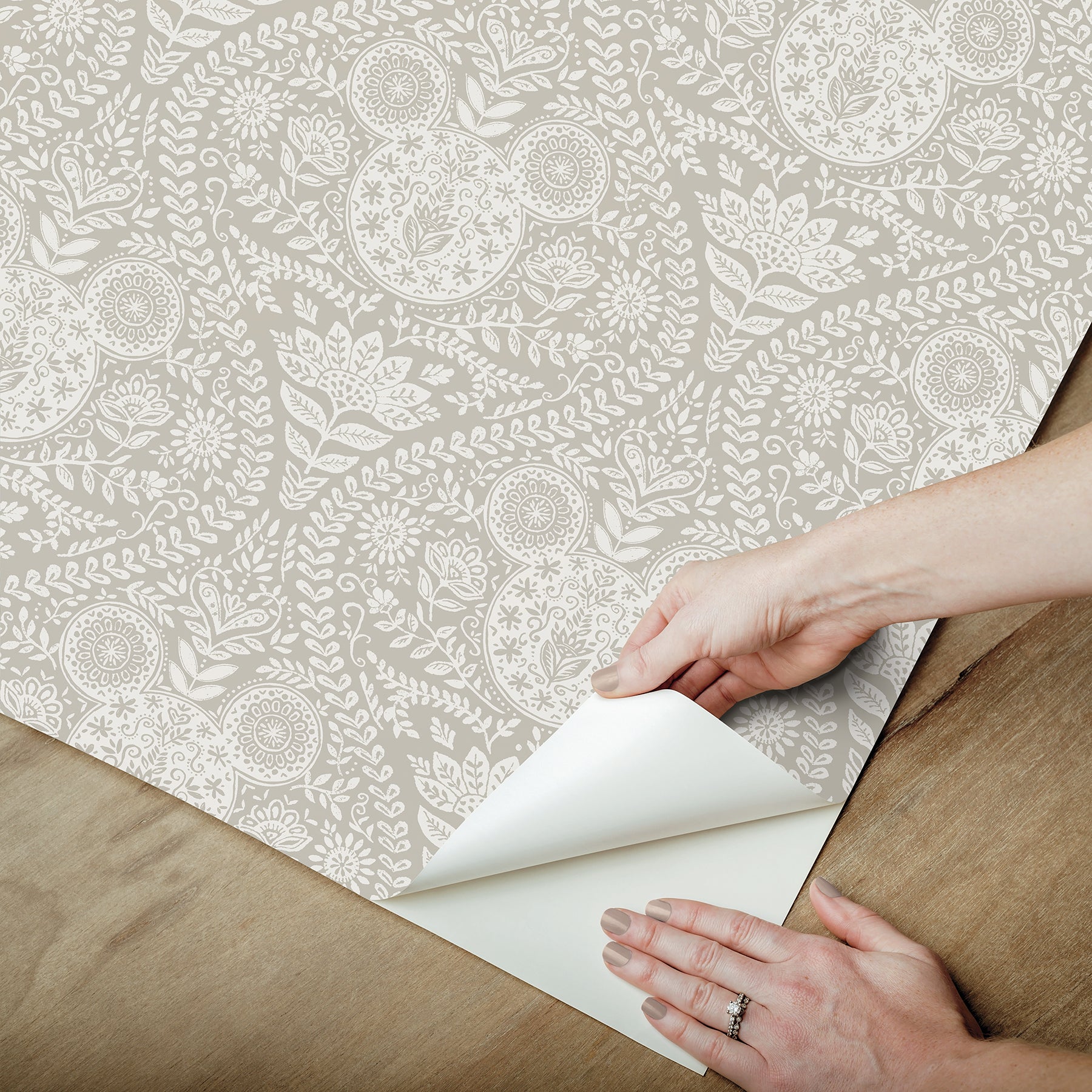 Use:An intricate, Scandinavian-inspired ogee pattern adorned with whimsical florals, scrolling greenery, and the iconic Disney Mickey Mouse emblem on RoomMates peel and stick wallpaper. Perfect for any Mickey Mouse lover?s home, this print brings the adoration of Disney to life in just Peel, Stick?Done!? Disney Mickey Mouse Cream Block Print Peel and Stick Wallpaper comes on one roll that measures 20.5 inches wide by 18 feet long.