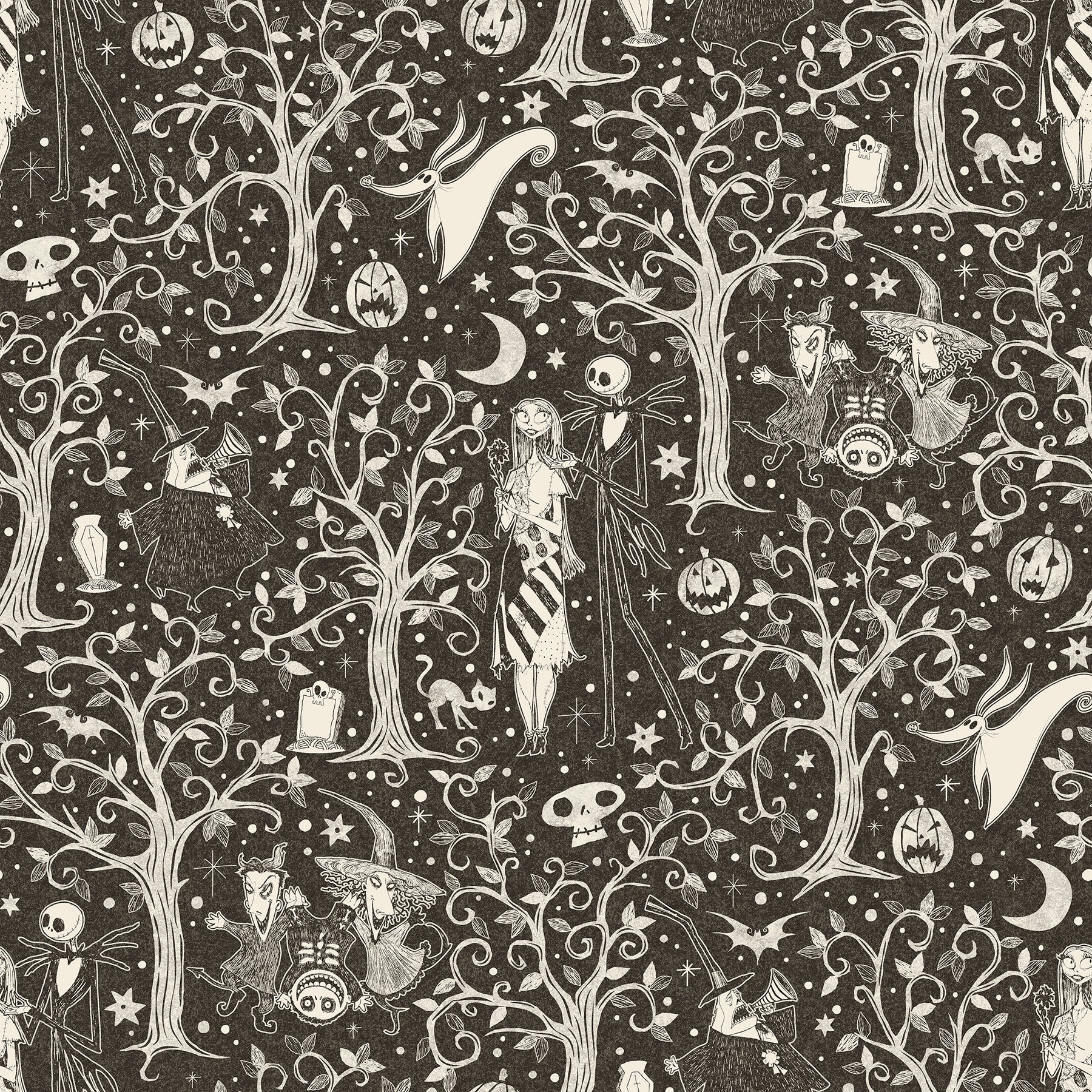 Pattern: RMK12795PLW / Disney Tim Burton's The Nightmare Before Christmas Sepia Forest Peel and Stick Wallpaper