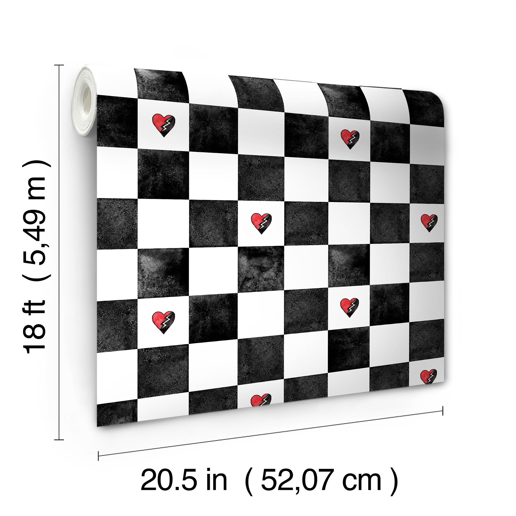 Size : Disney Descendants black and white checkerboard peel and stick wallpaper by RoomMates D??cor.Peel and stick to apply, pull up to remove.RoomMates Peel and Stick Wallpaper is safe for walls and leaves no sticky residue behind.Easily repositionable while installing.RoomMates Peel and Stick Wallpaper sticks to any smooth, flat surface - perfect for DIY projects.Ideal for rental or home decorating.Comes on a 20.5-in x 18-ft roll and covers about 30.8 sq. ft.Design repeat of 20.5-in.This product should NOT be applied to textured walls - smooth clean, dry, painted surface only (no Non-Stick paint or soap residue)