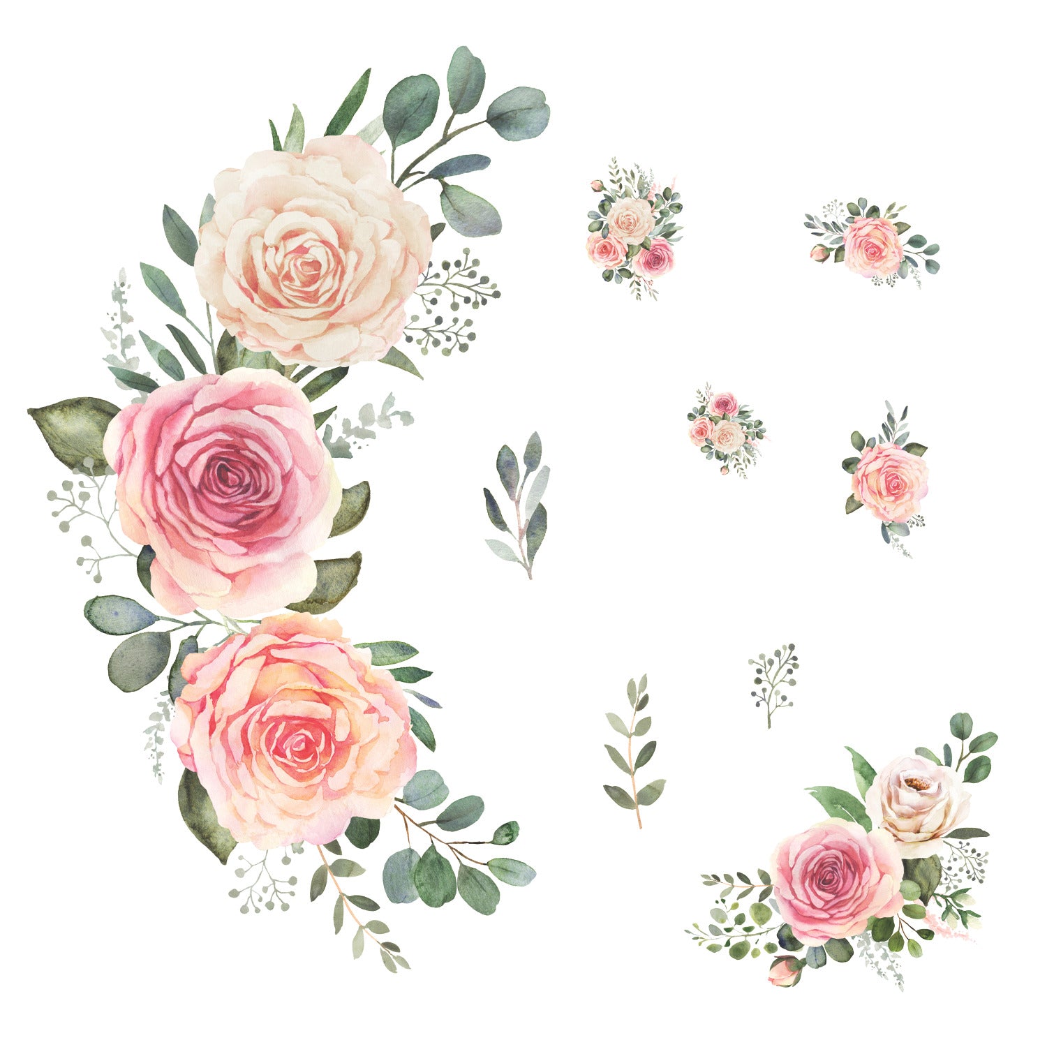 Use:Decorate walls with Pink Roses Peel and Stick Giant Wall Decals by RoomMates. Complete with 10 decals, this wall sticker set is a fun and creative way to transform any room in seconds. To apply, simply peel and stick decals to any smooth, flat surface. Remove, reposition and reuse as often as needed. Created with high quality vinyl that's made to last, walls stay completely safe, and sticky residue is never left behind. It?s fast, fun and affordable wall decor it?s best.